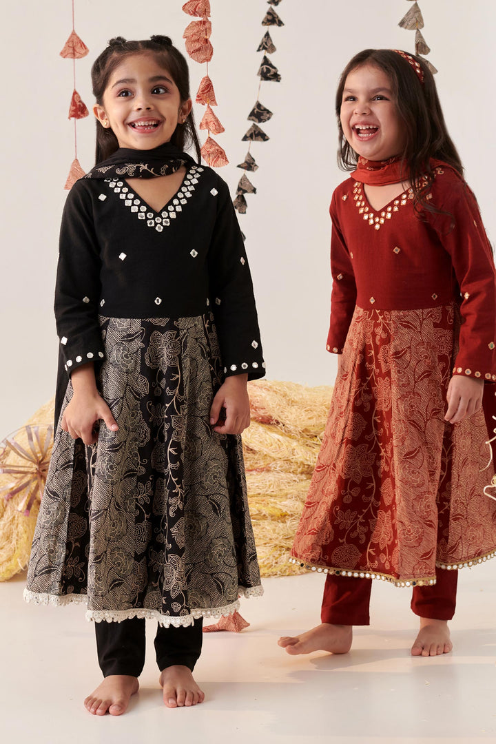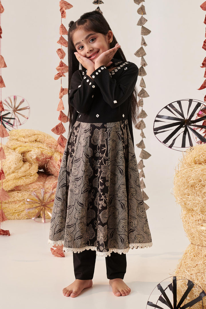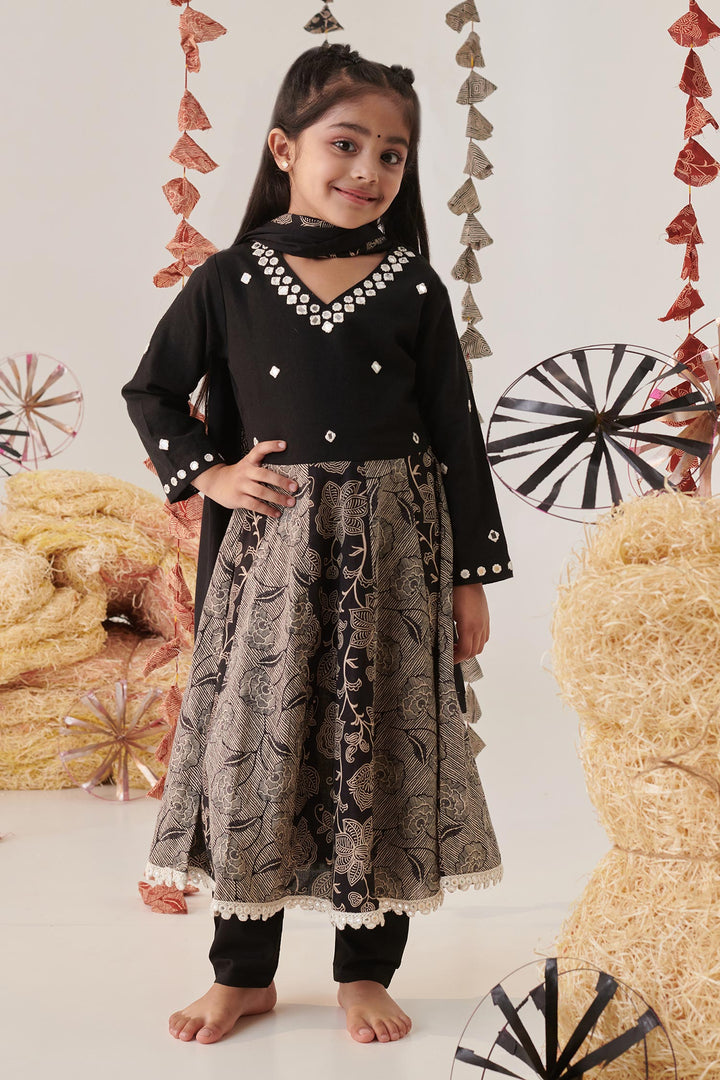 Black Anarkali Cotton Embroidered Mirror Pant Set