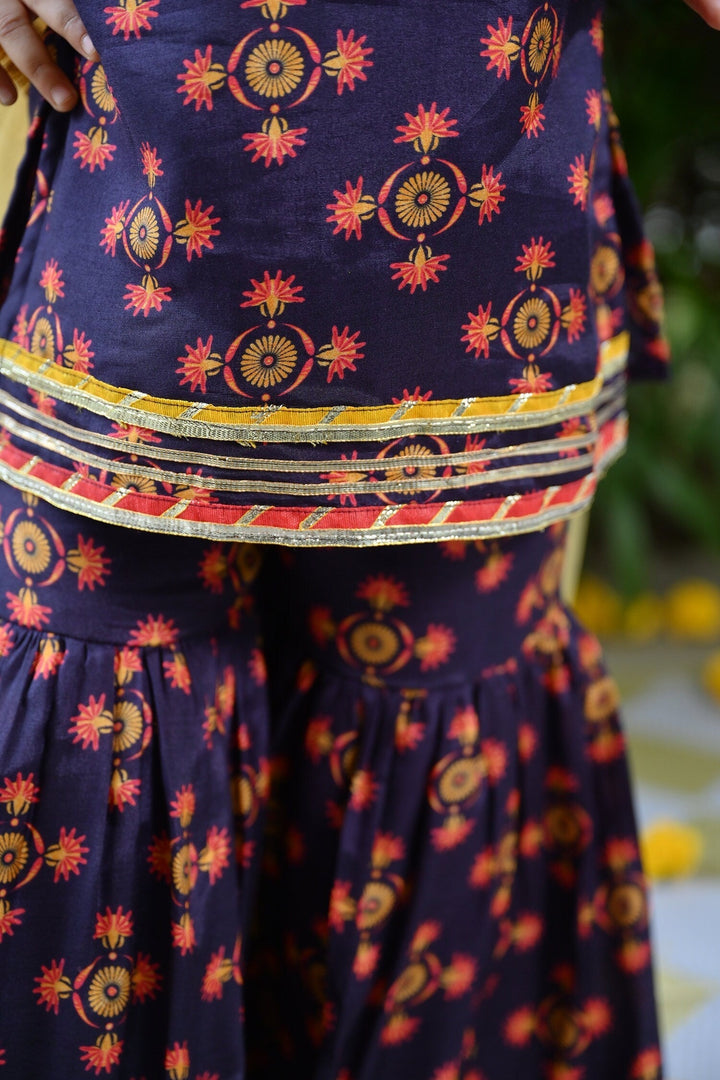 Blue Muslin Embroidered Gota Embellished Kurta Sharara Set