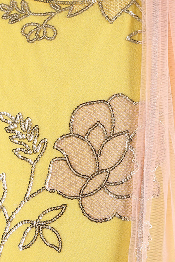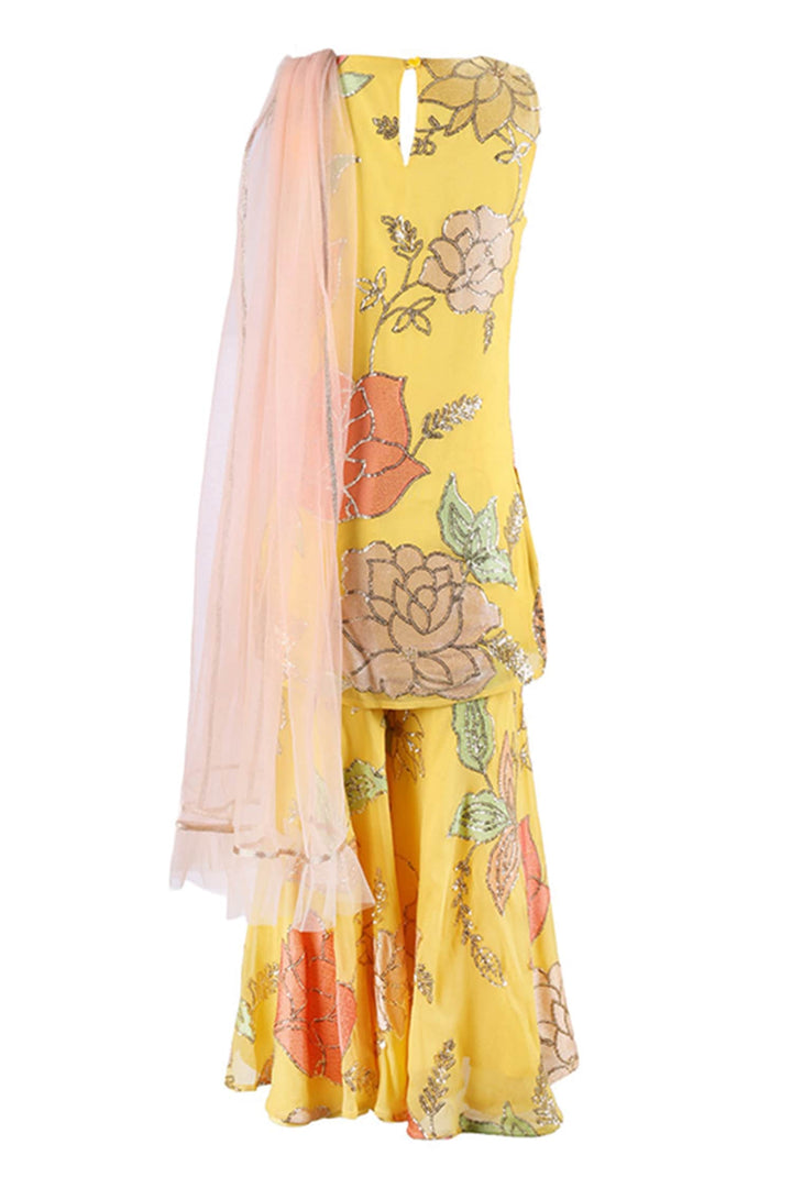 Yellow Georgette Embroidered Floral Motifs Kurta Sharara Set For Girls