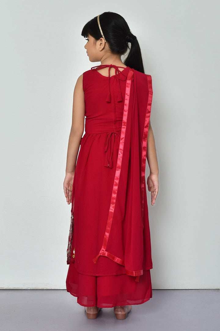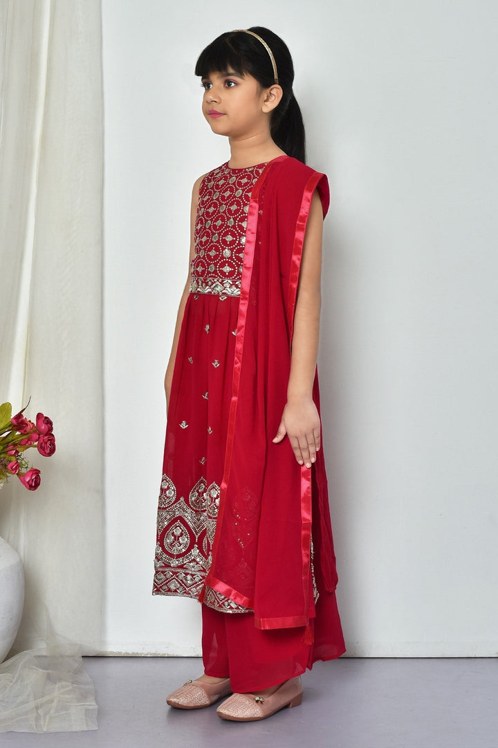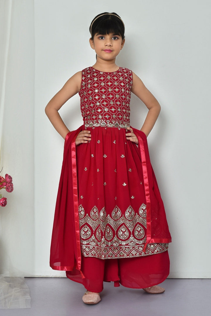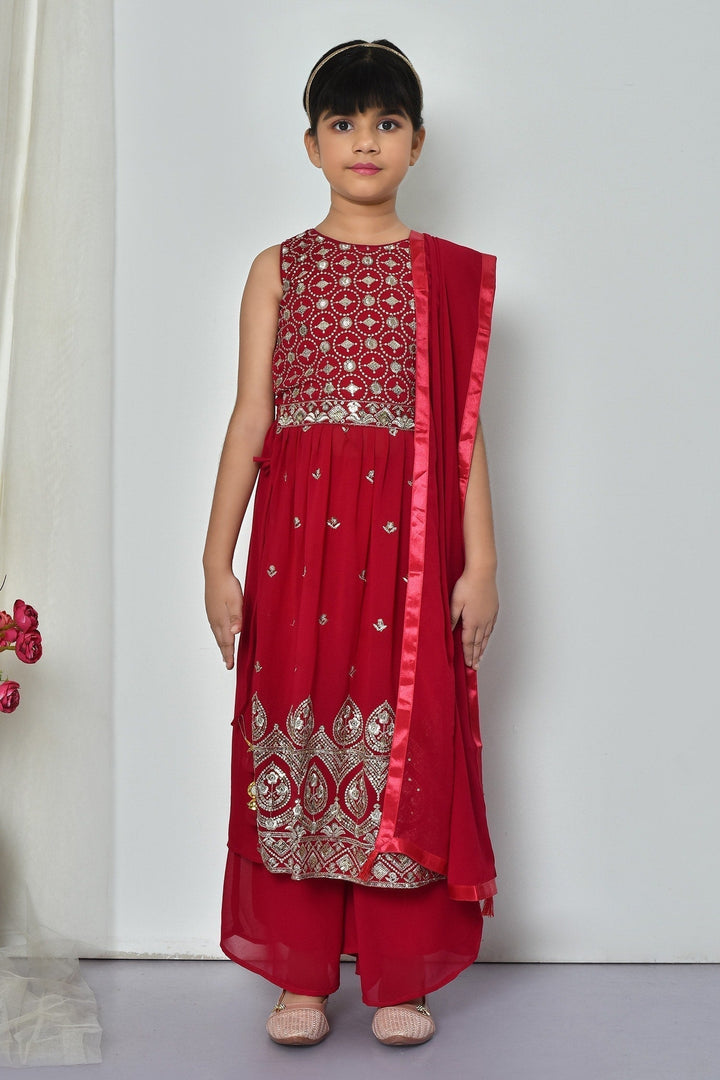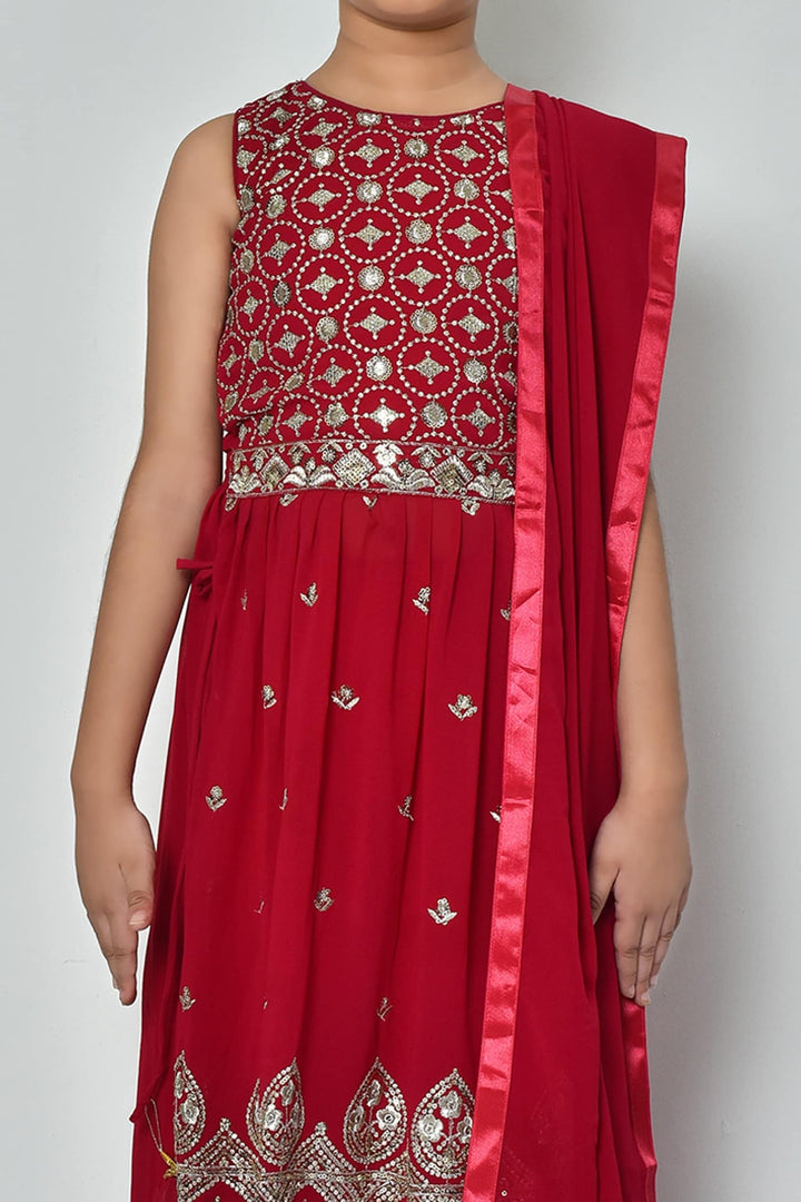 Pink Georgette Embroidered Sequin Straight Kurta Sharara Set For Girls