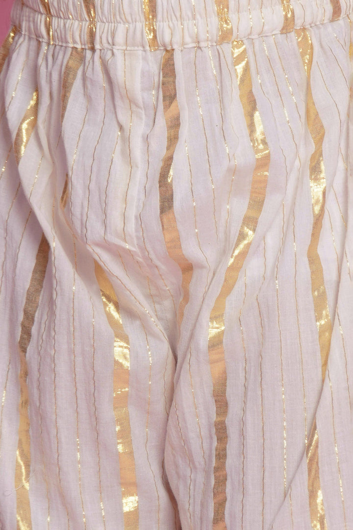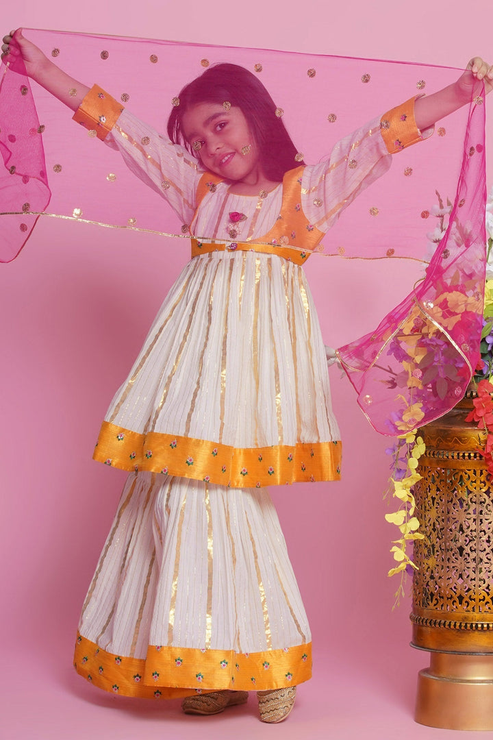 Cream Cotton Embroidered Floral Kurta Sharara Set