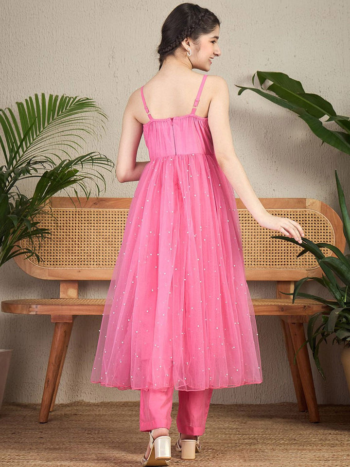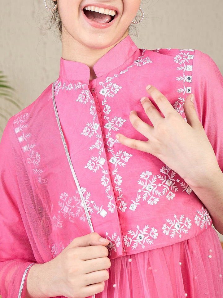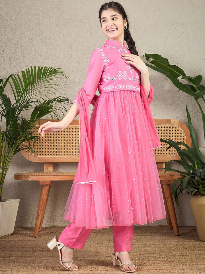 Girls Ethnic Motifs Embroidered Empire Mirror Work Kurta with Trousers & With Dupatta