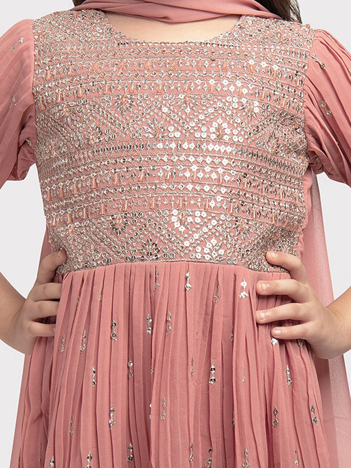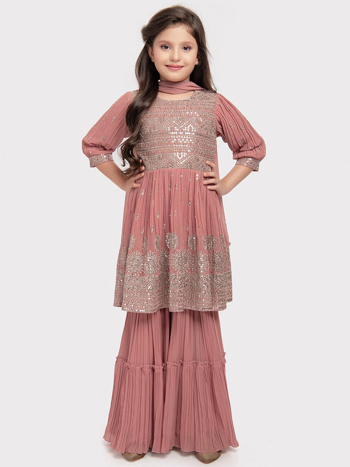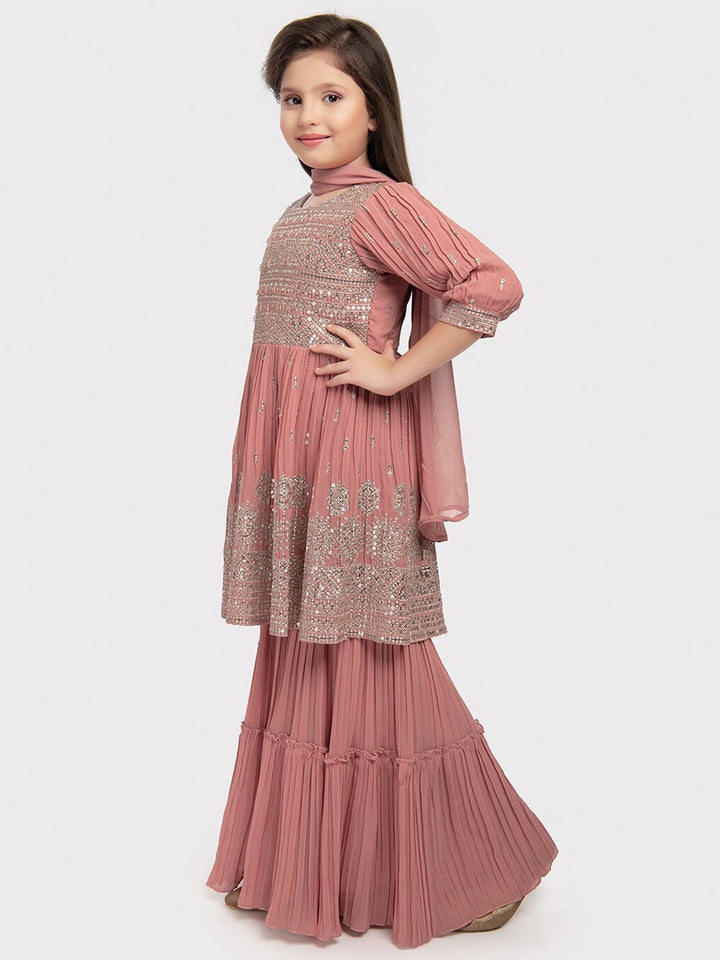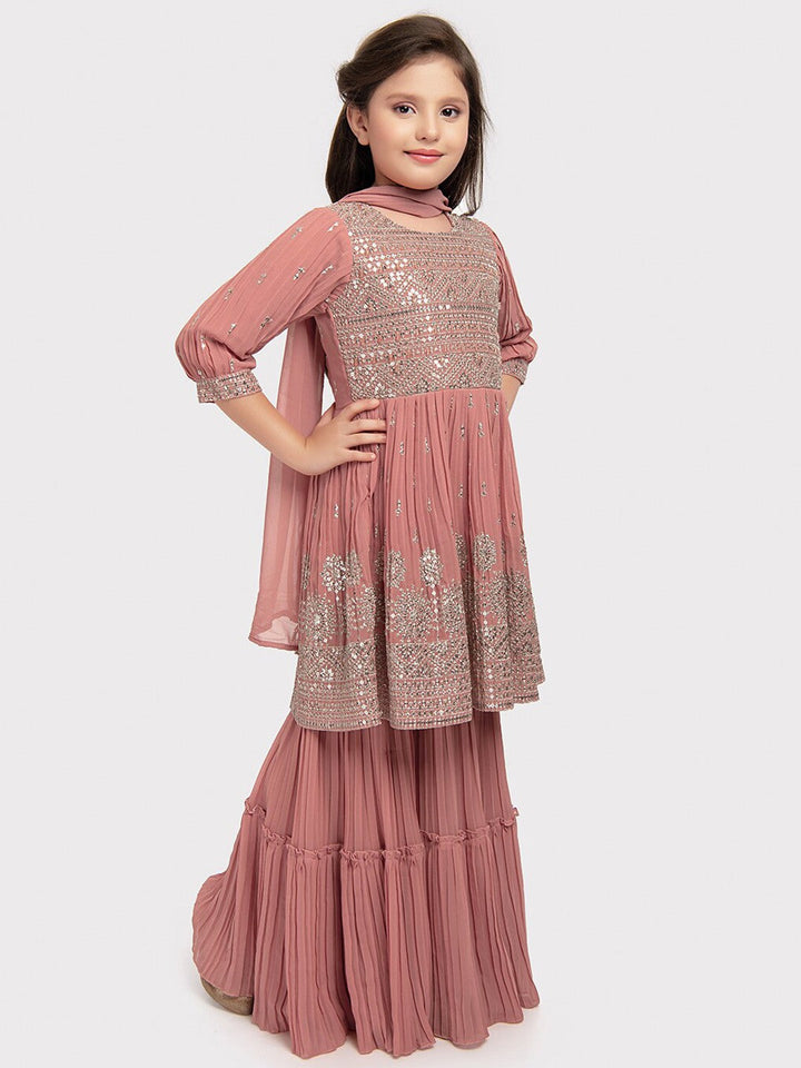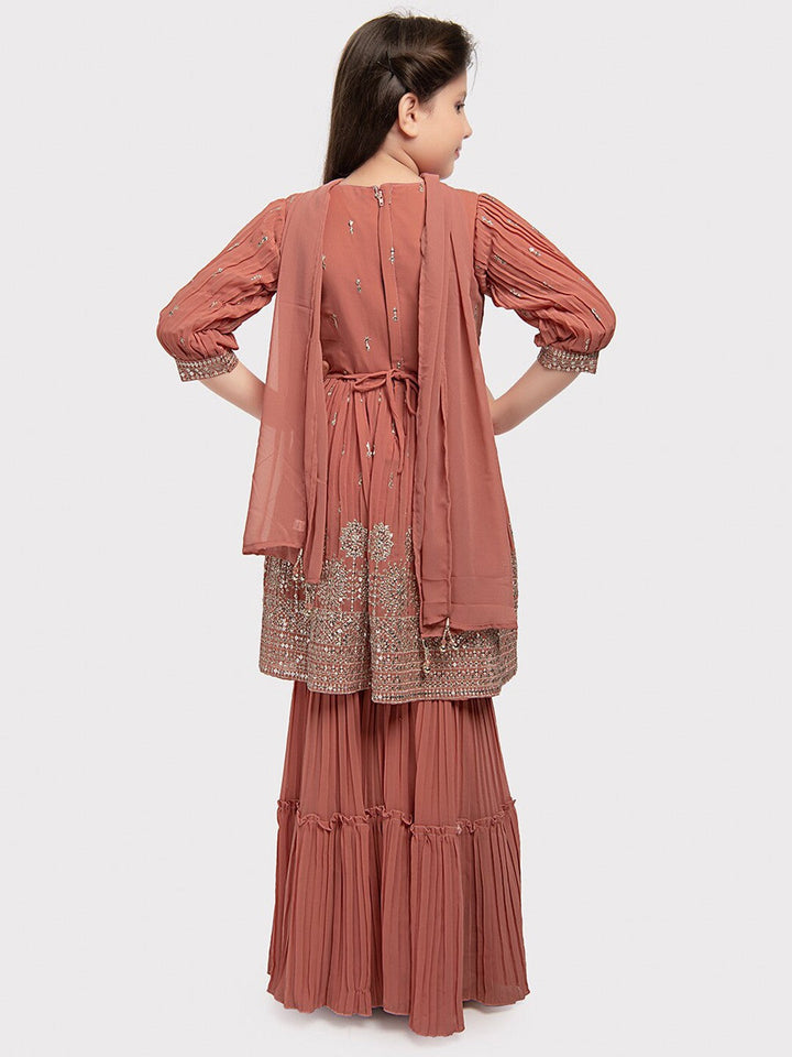 Girls Ethnic Motifs Embroidered Empire Sequinned Kurta with Sharara & Dupatta