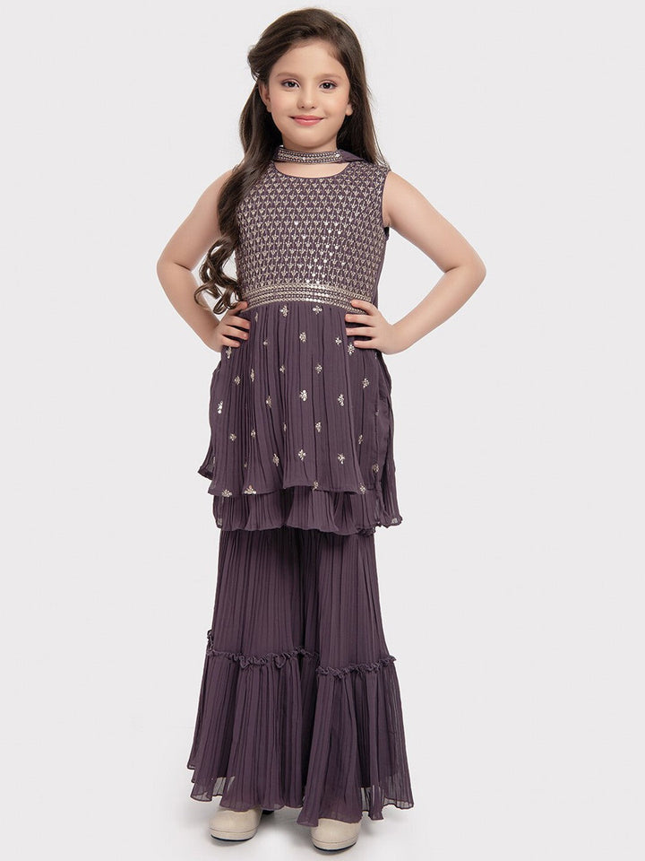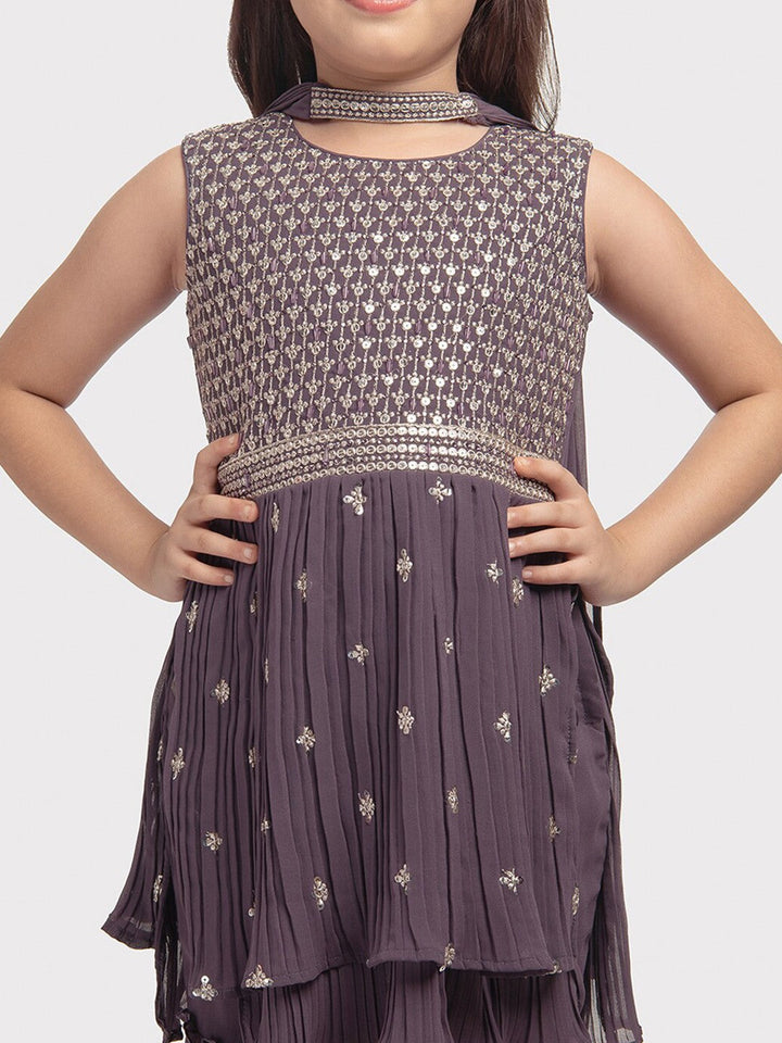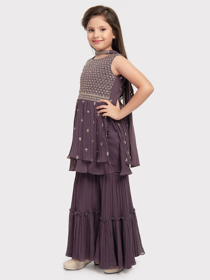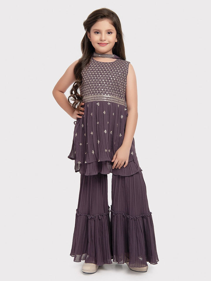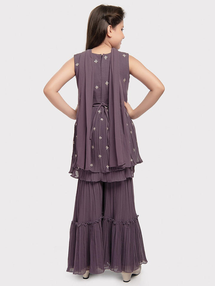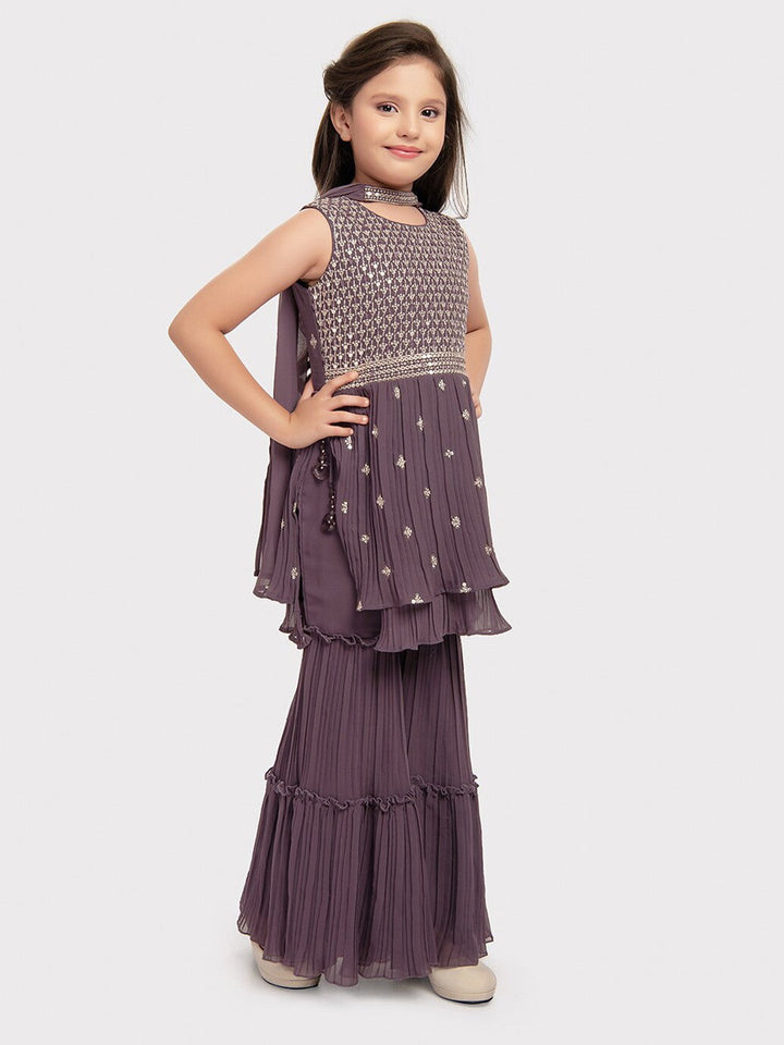 Girls Ethnic Motifs Embroidered Empire Sequinned Kurta with Sharara & Dupatta