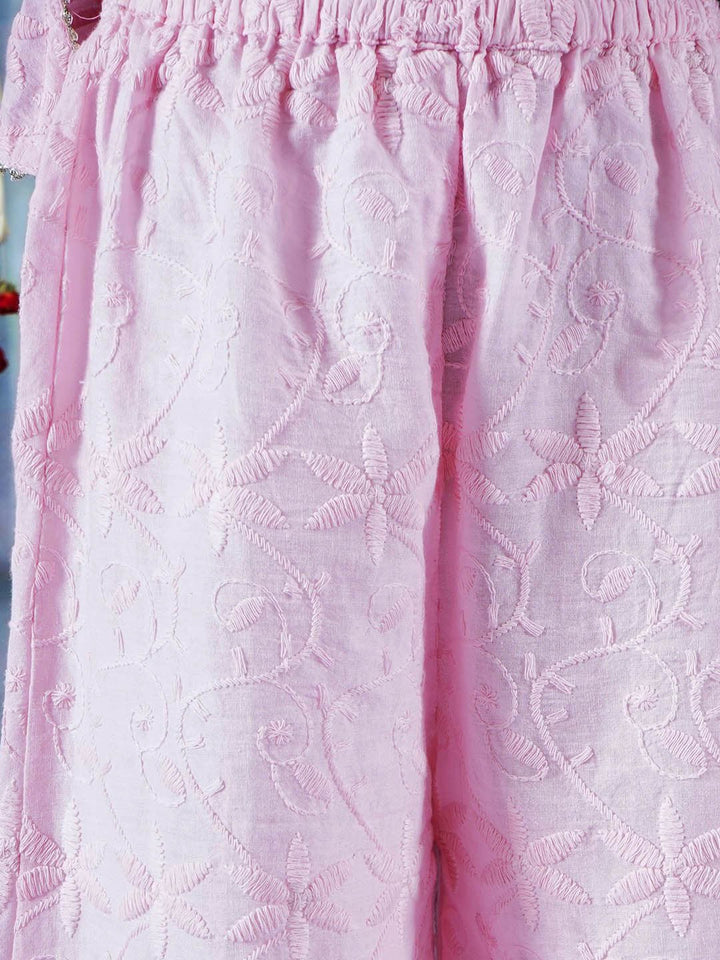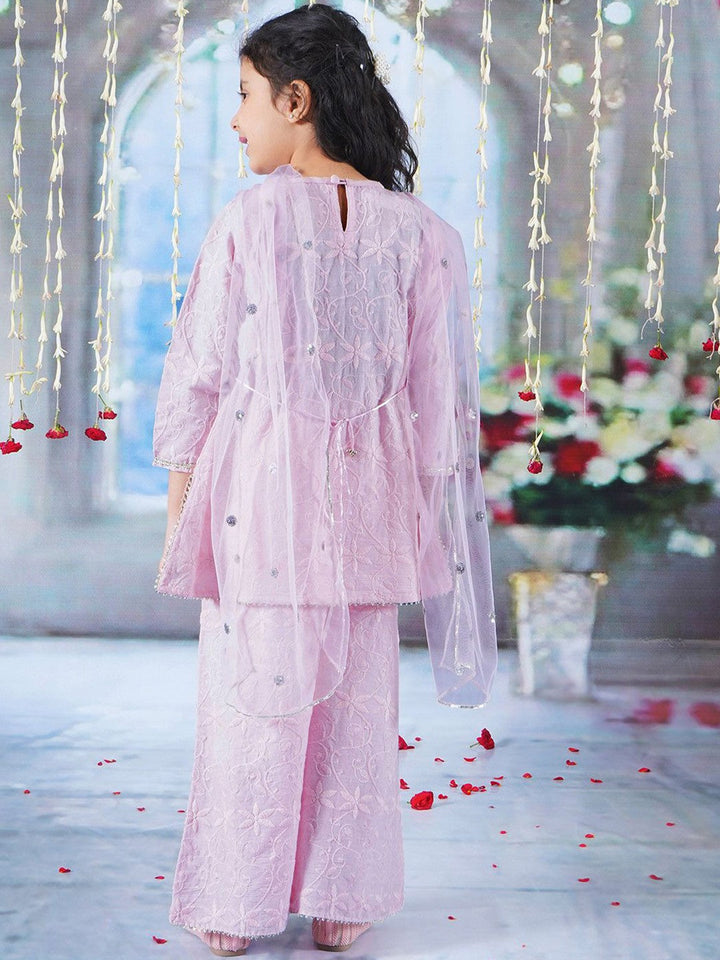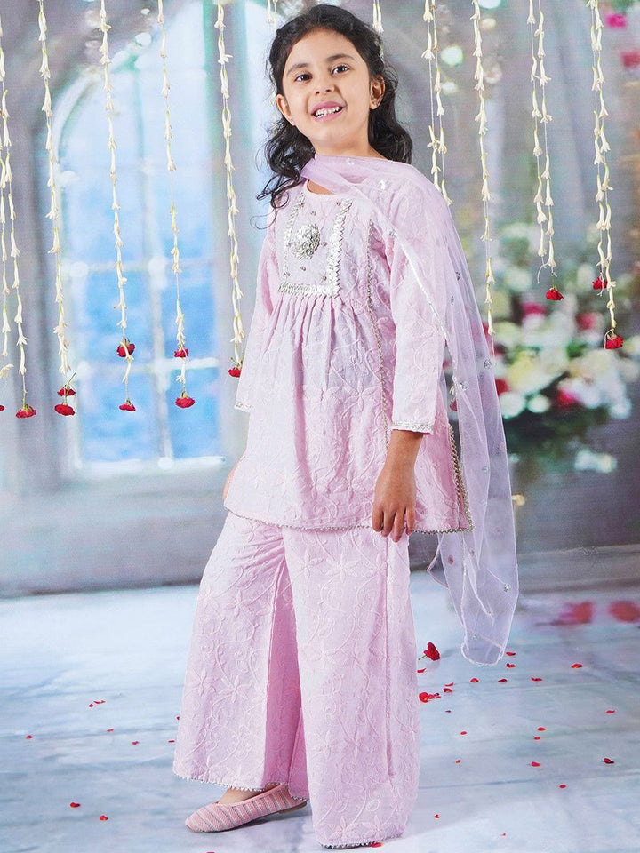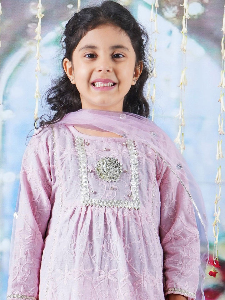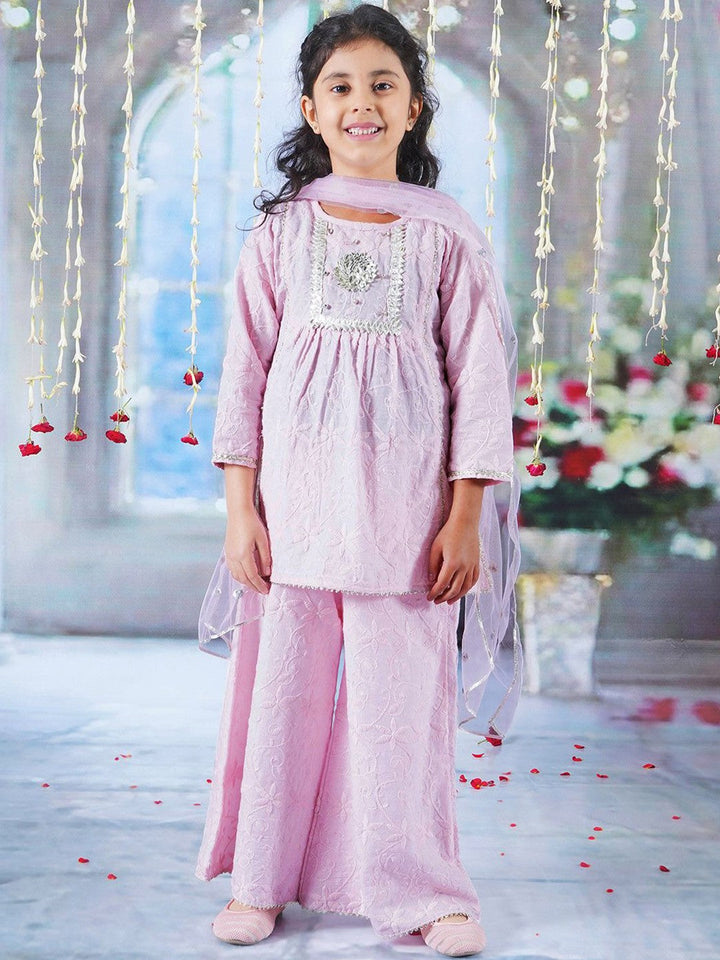 Girls Ethnic Motifs Embroidered Pure Cotton Kurta with Palazzos & Dupatta