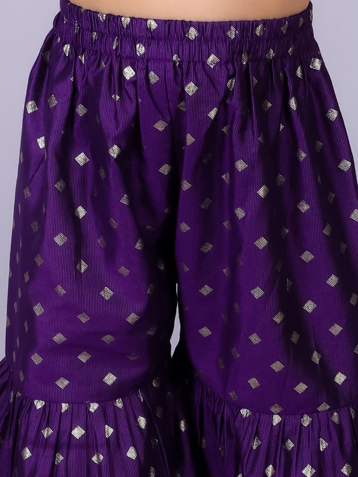 Girls Ethnic Motifs Embroidered Regular Gotta Patti Kurti with Sharara & Dupatta