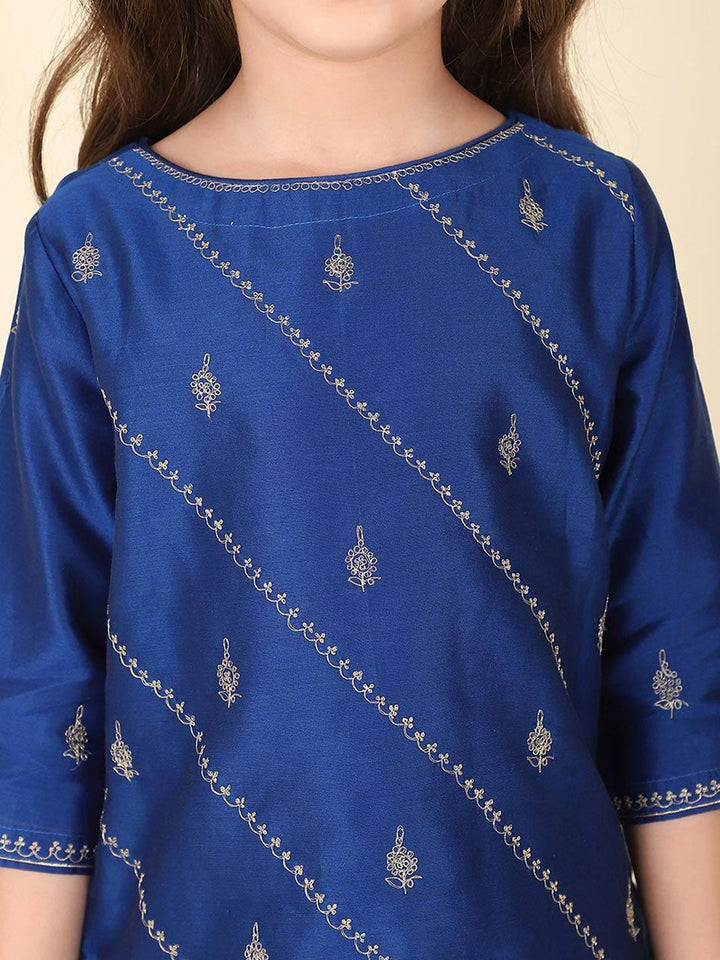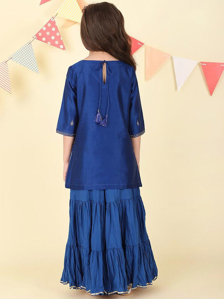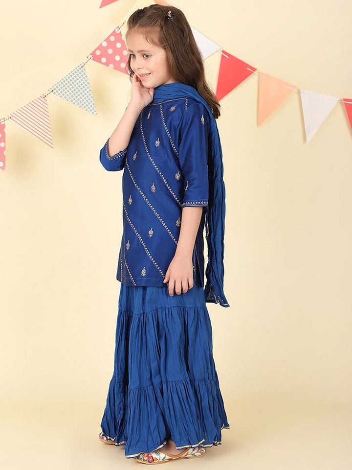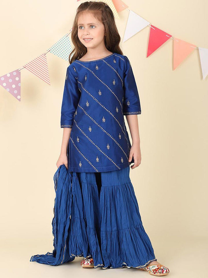 Girls Ethnic Motifs Embroidered Regular Kurta with Sharara & Dupatta