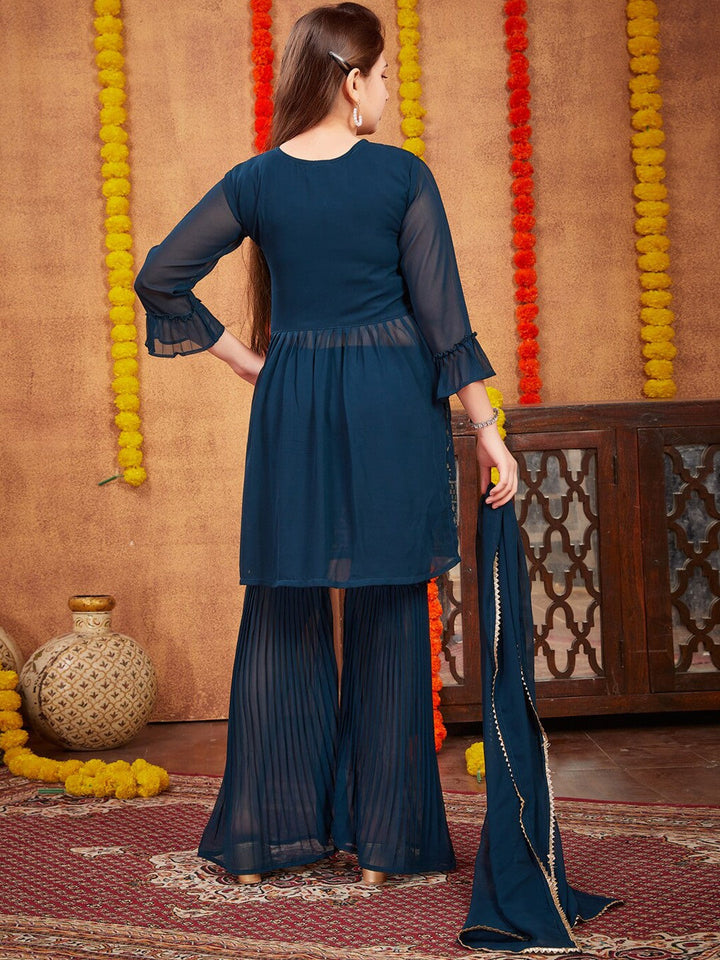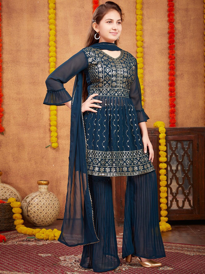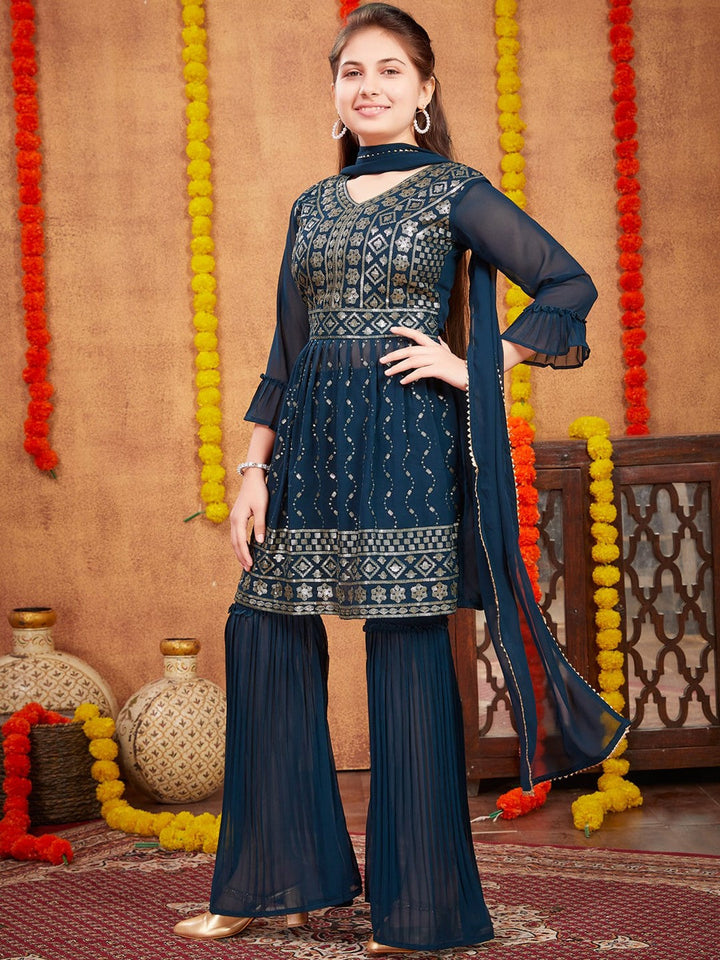 Girls Ethnic Motifs Embroidered Sequinned Kurta & Sharara With Dupatta