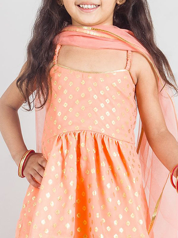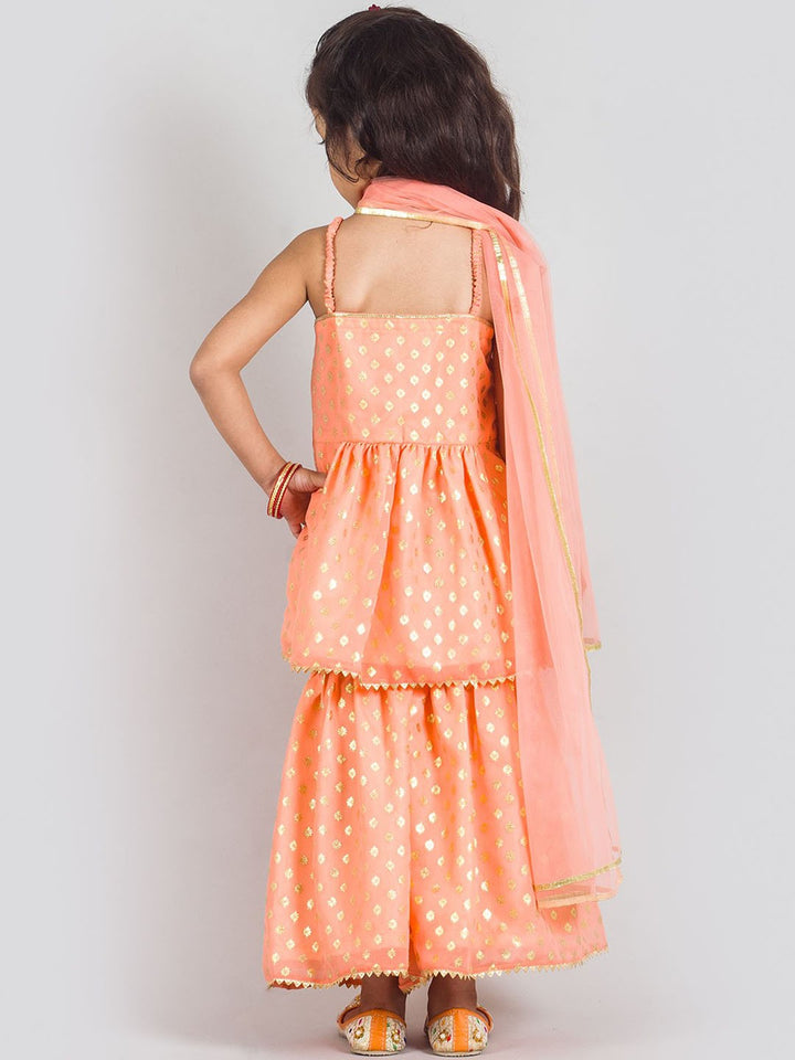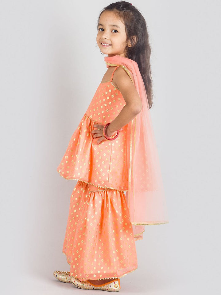 Girls Ethnic Motifs Gotta Patti Anarkali Kurti with Sharara & Dupatta