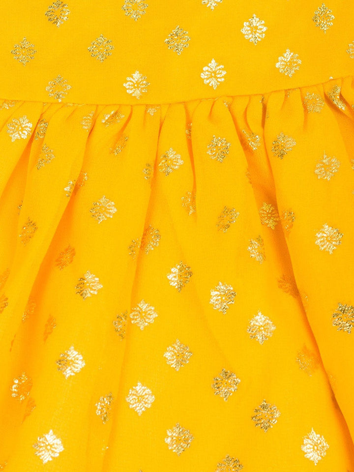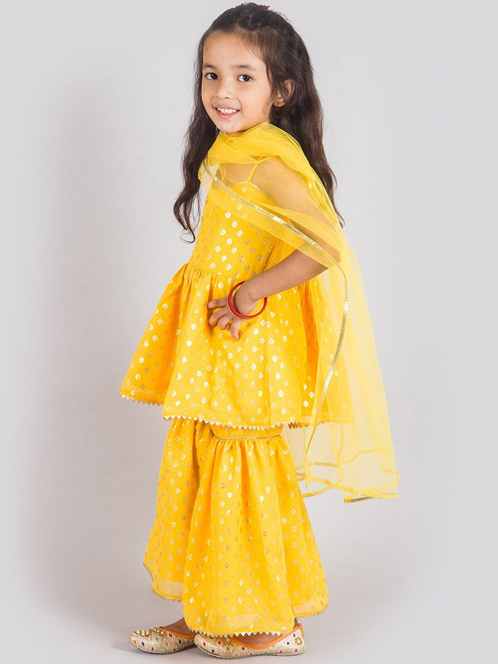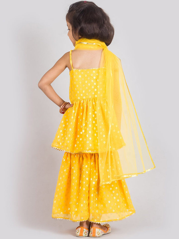 Girls Ethnic Motifs Woven Design Anarkali Top With Sharara & Dupatta