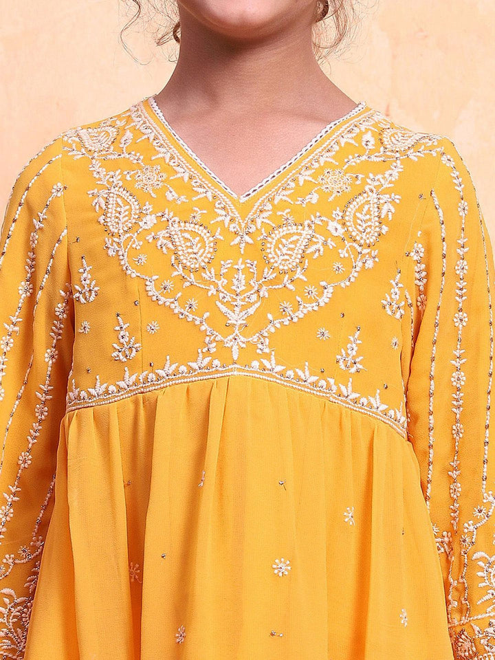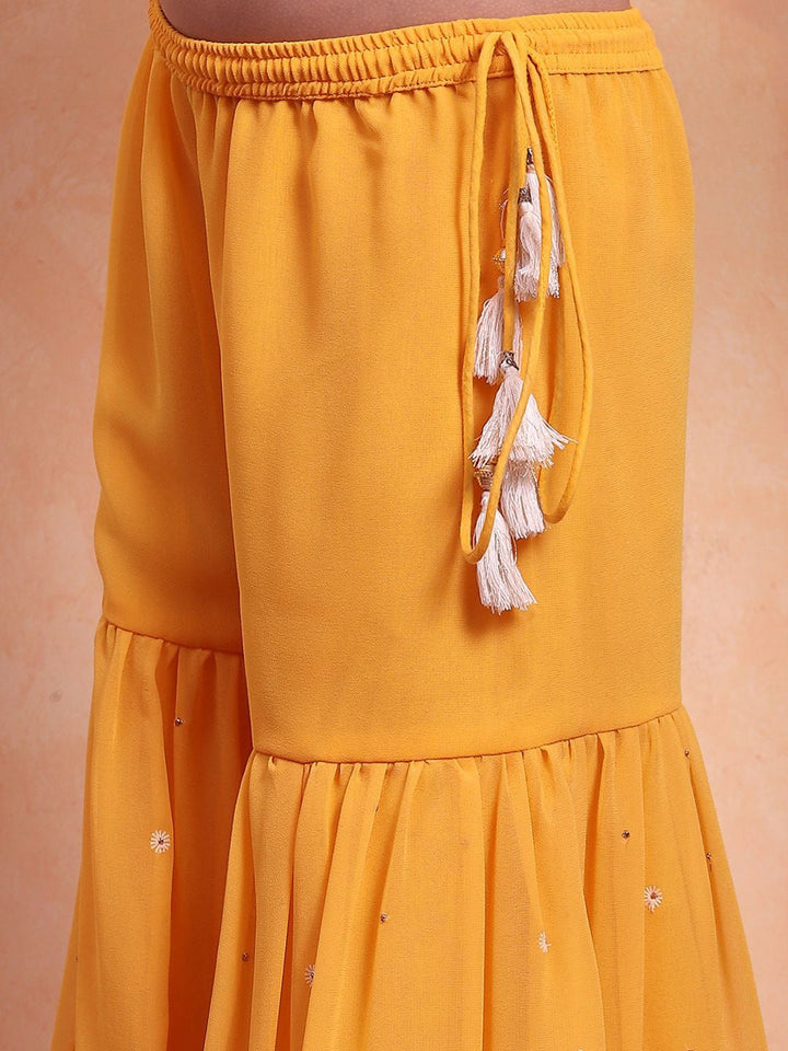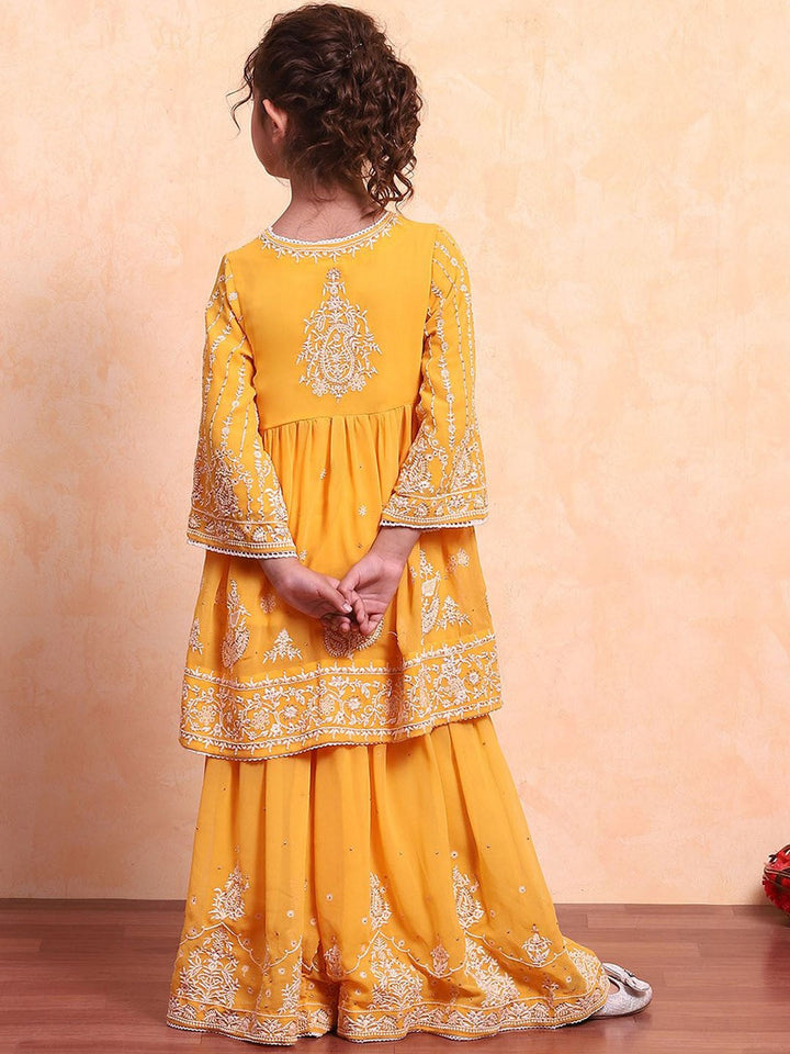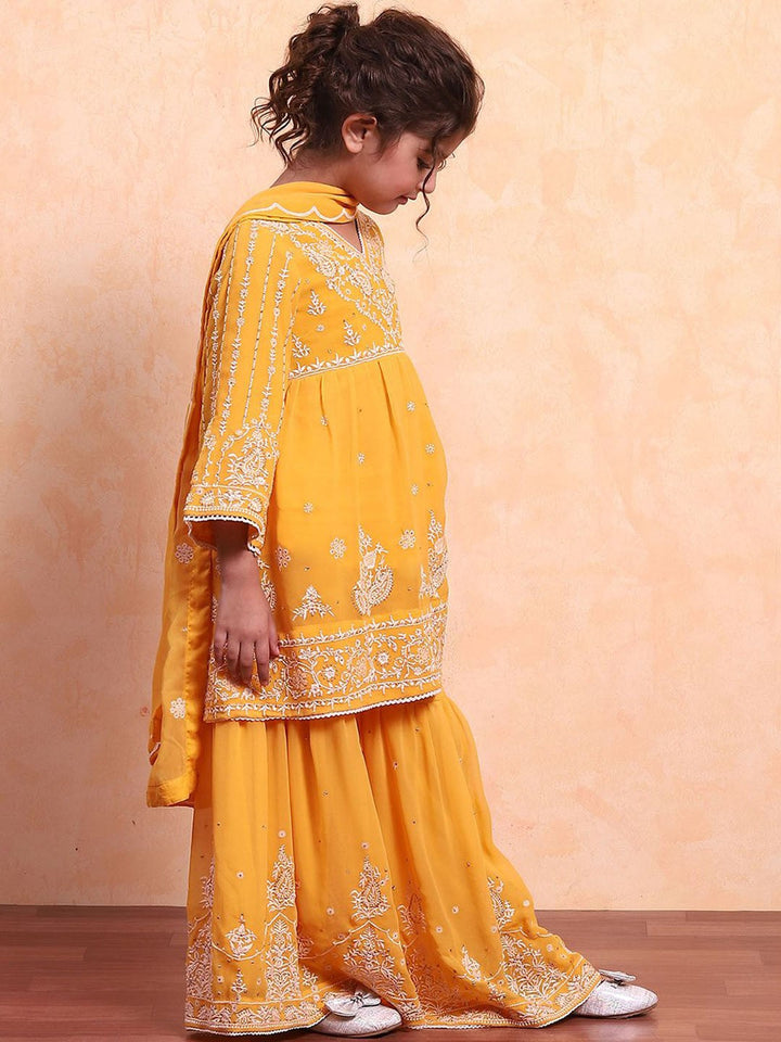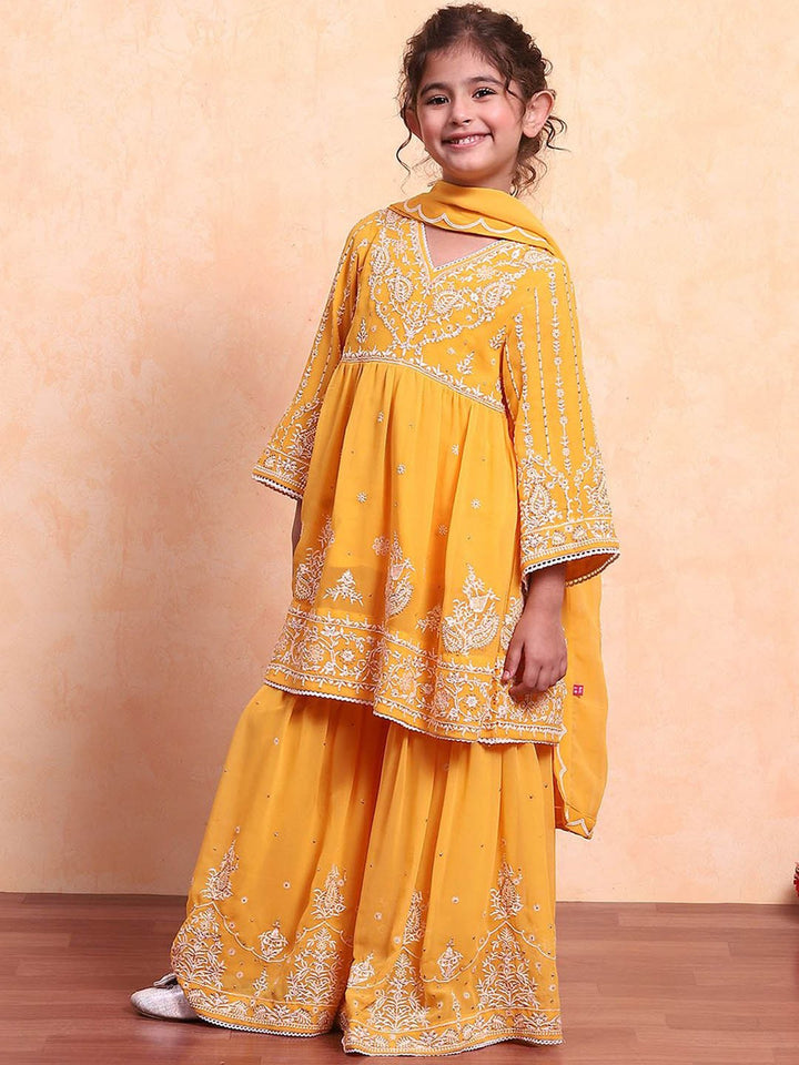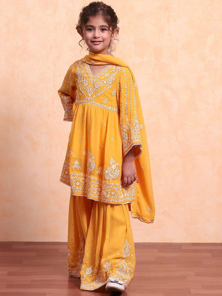 Girls Floral Embroidered Sequinned A-Line Kurta with Palazzos & Dupatta