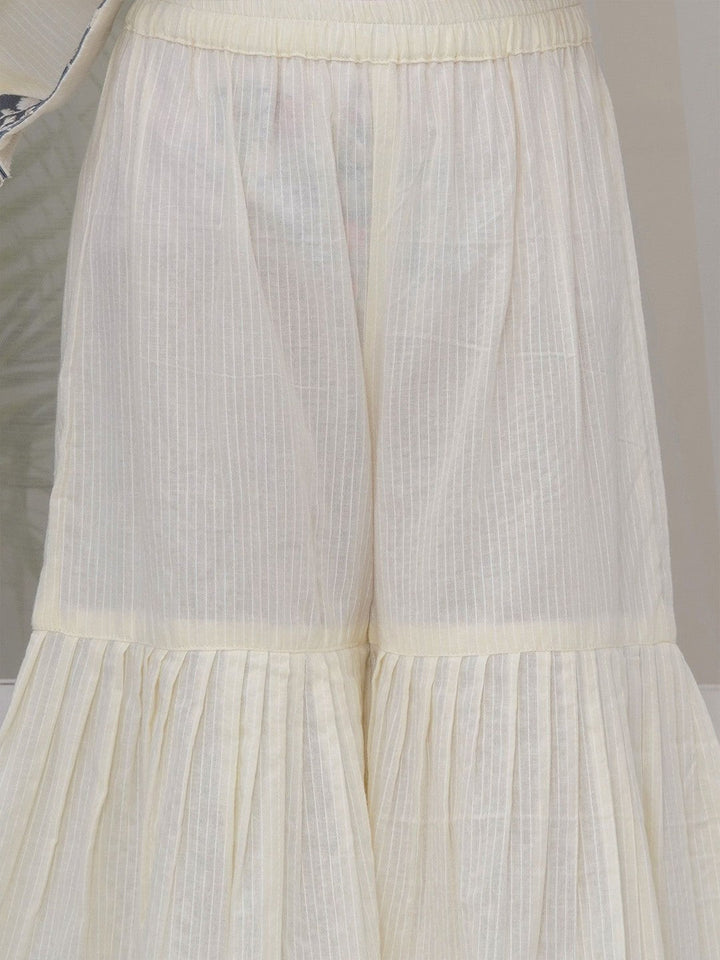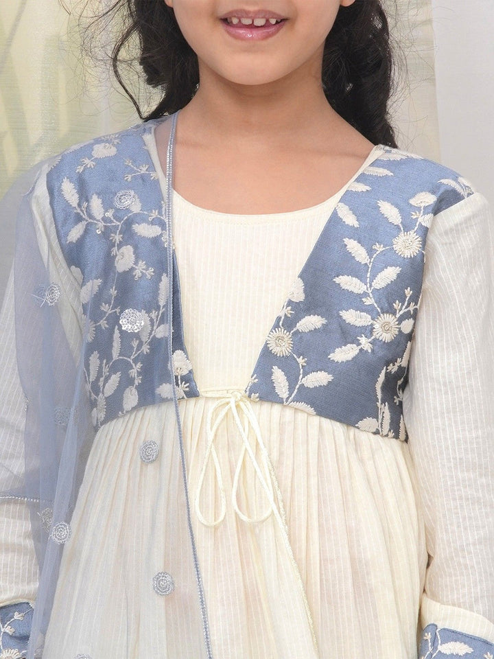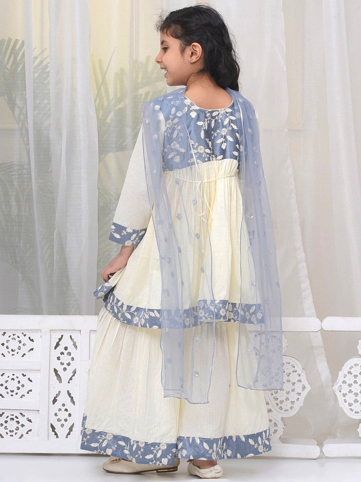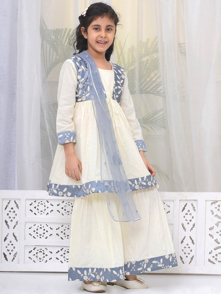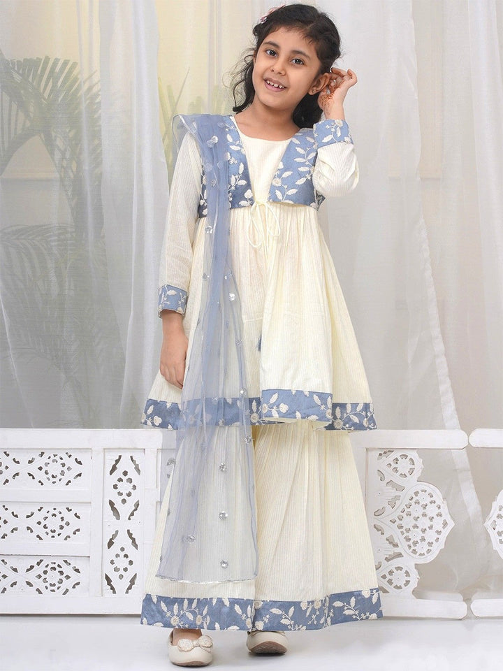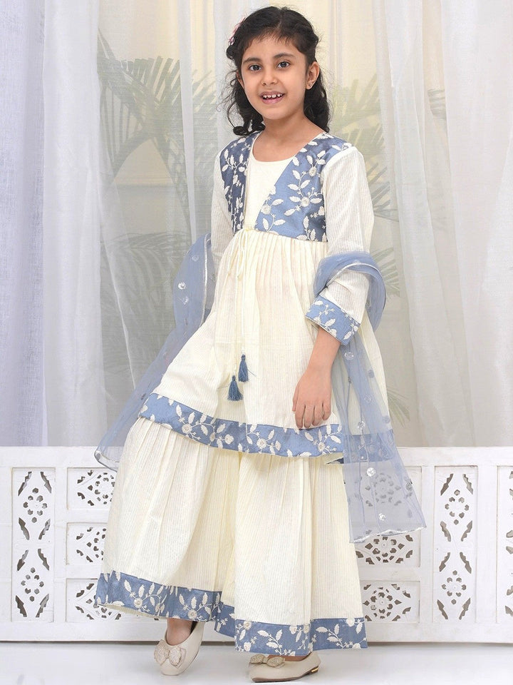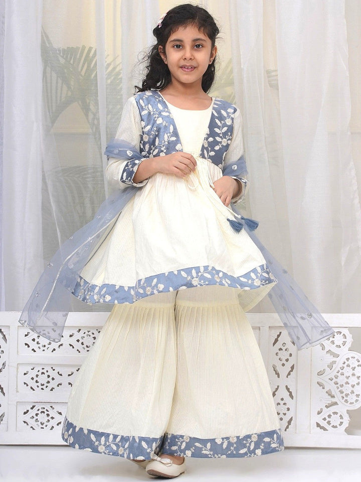 Girls Floral Embroidered Sequinned Pure Cotton Kurta with Sharara & Dupatta