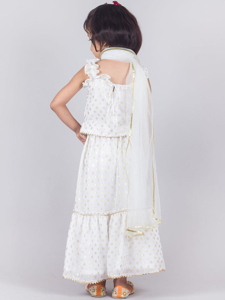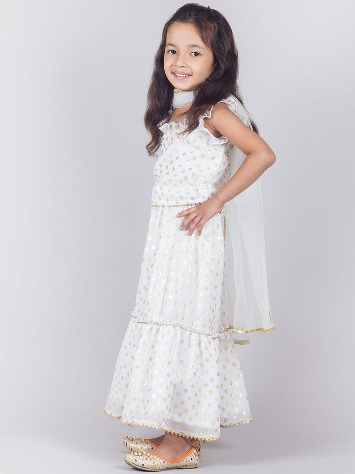 Girls Floral Embroidered Thread Work Top With Sharara & Dupatta