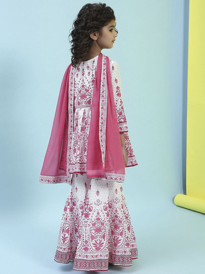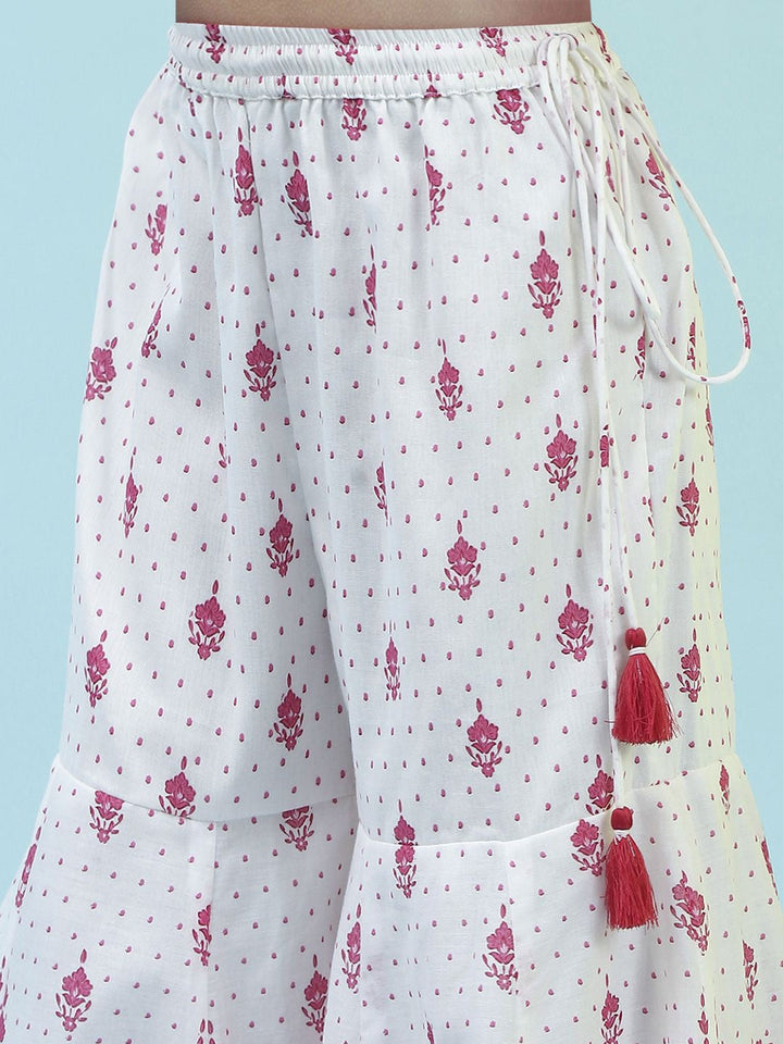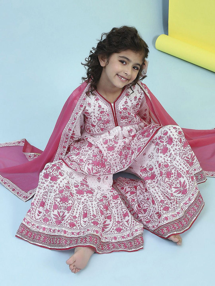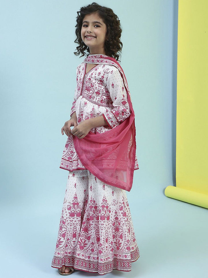 Girls Floral Printed Cotton Kurta with Sharara & Dupatta