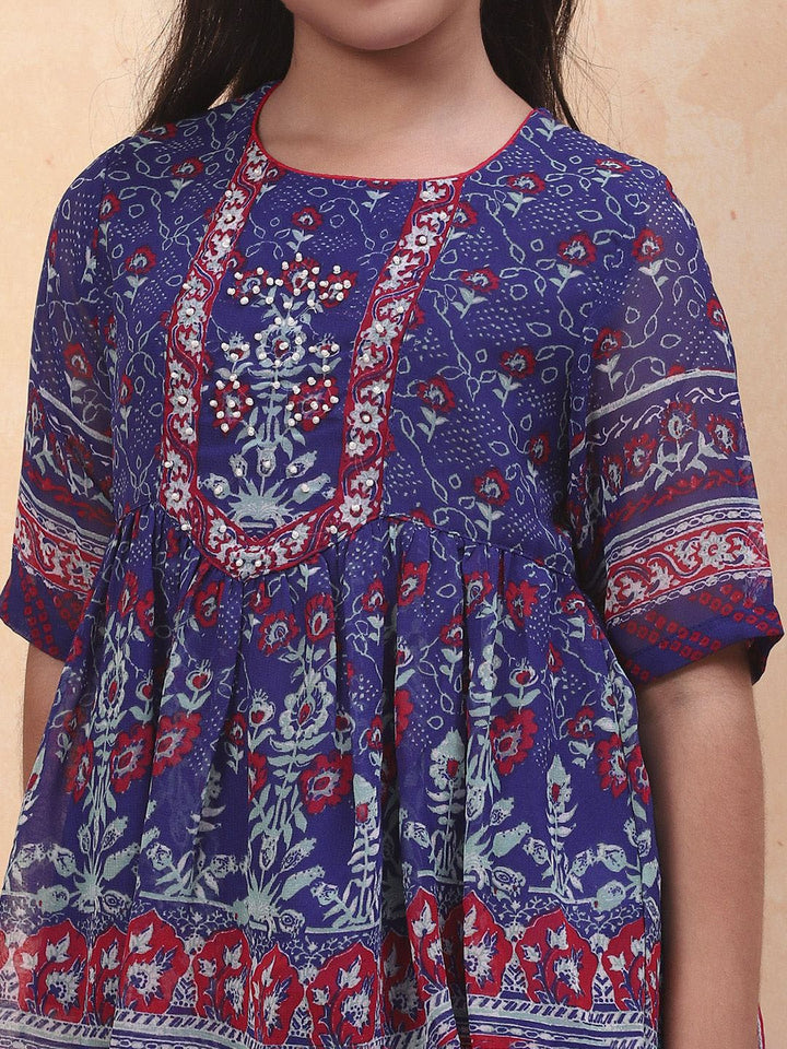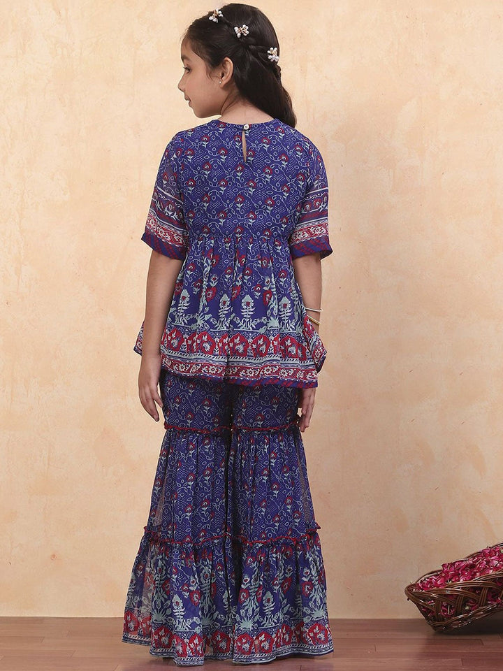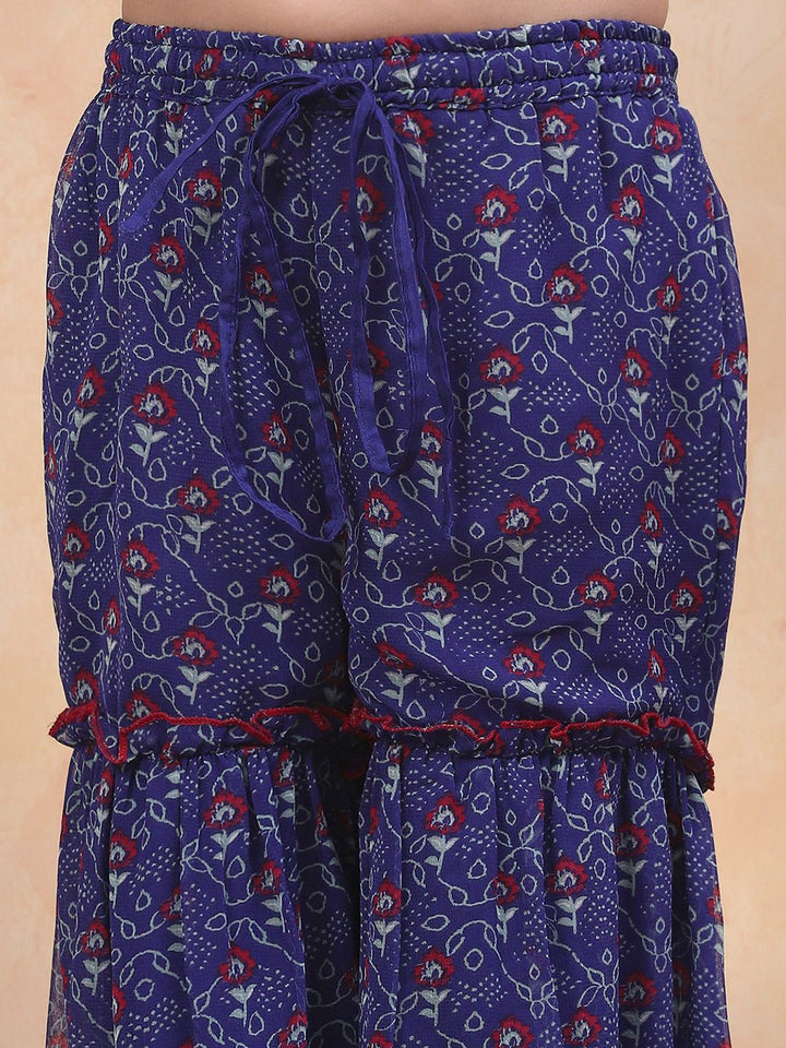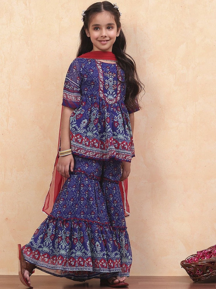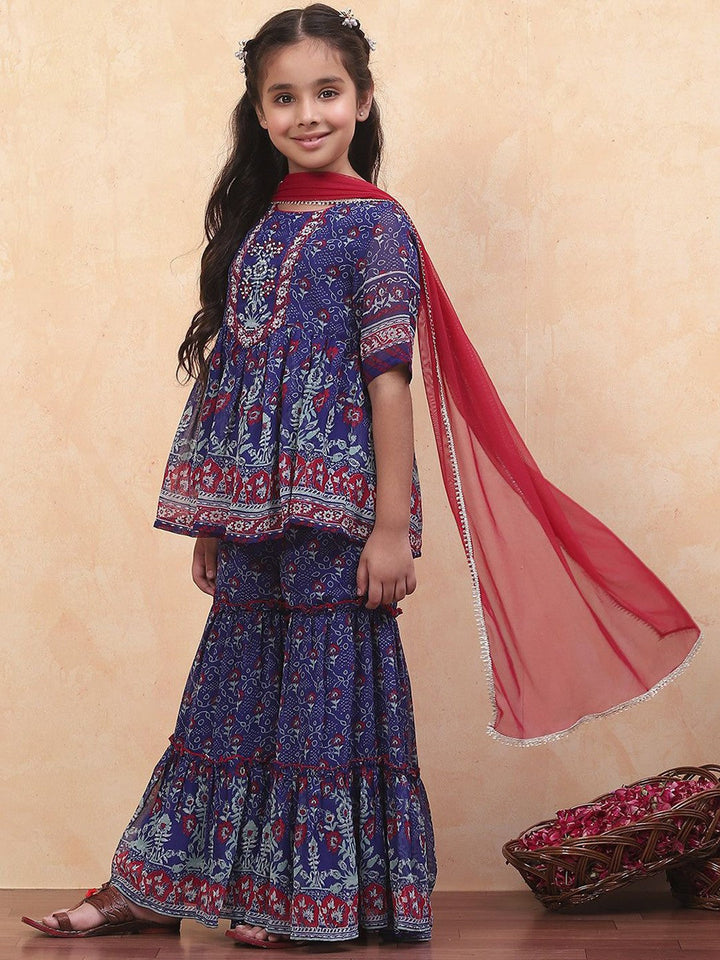 Girls Floral Printed Regular A-Line Kurti with Sharara & Dupatta