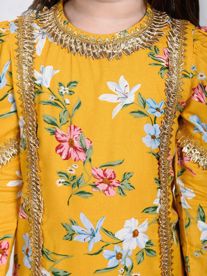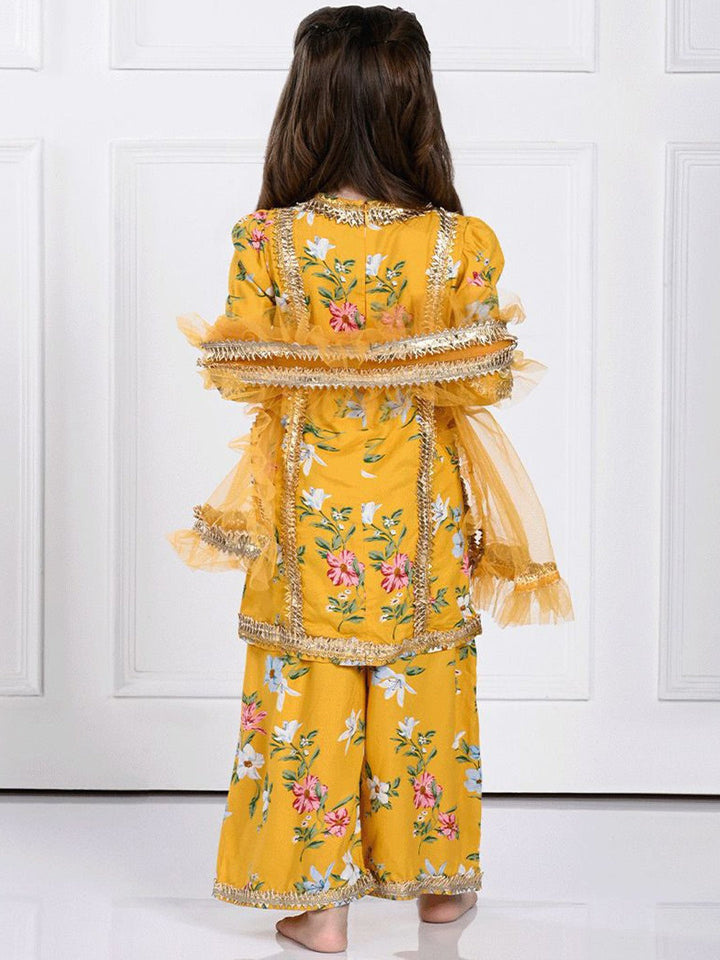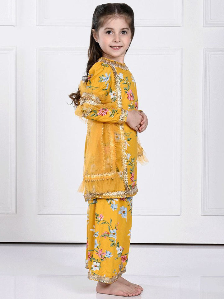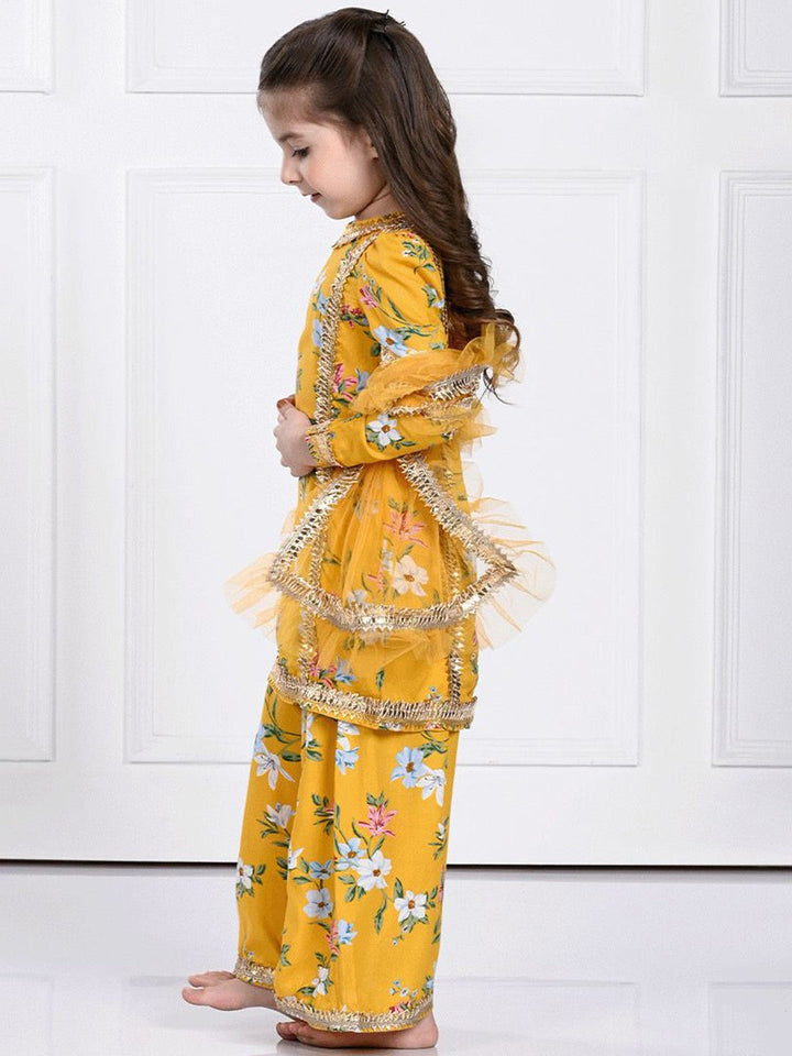 Girls Floral Printed Straight Kurta & Palazzos & With Dupatta