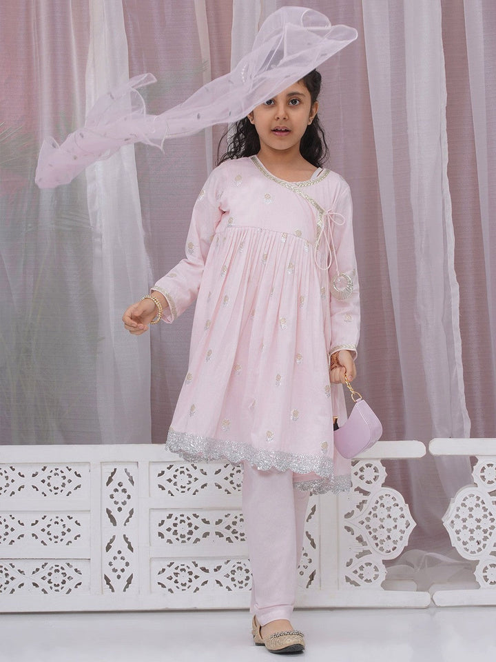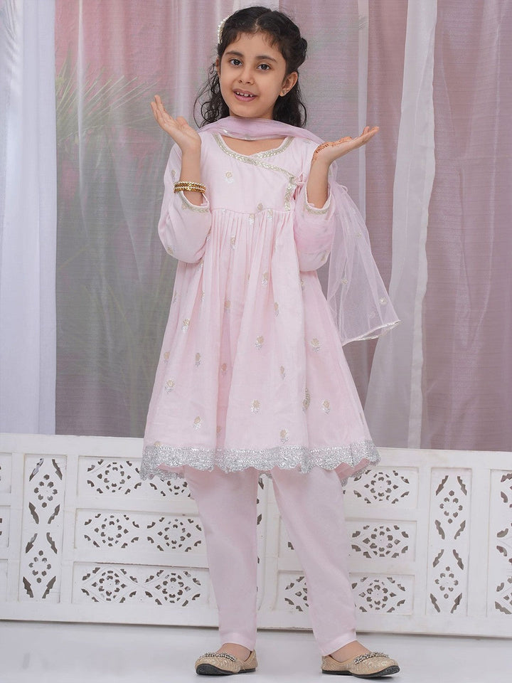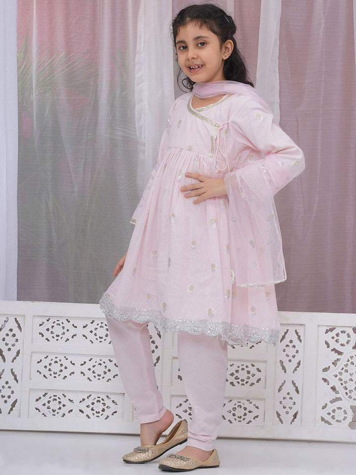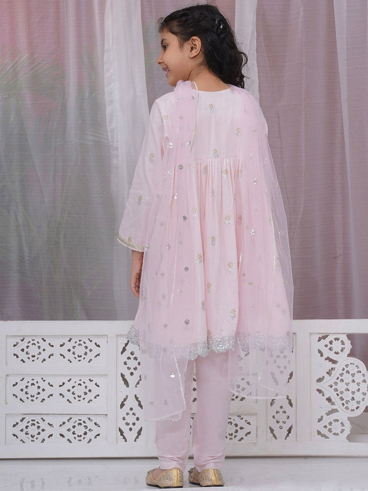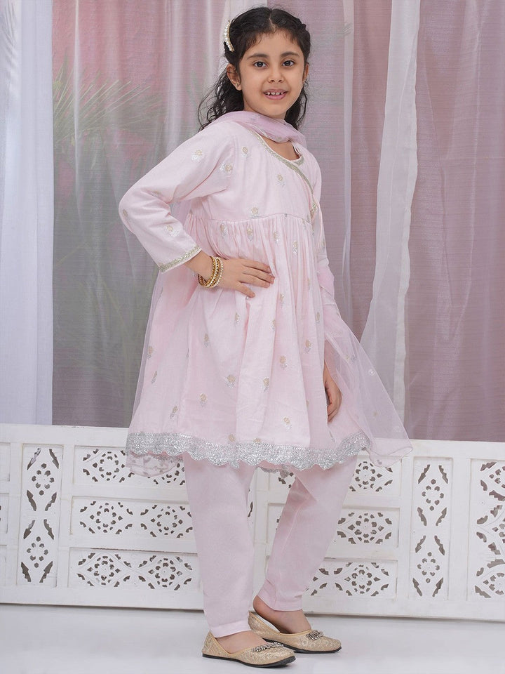 Girls Floral Woven Design Pure Cotton A-Line Kurta with Salwar & Dupatta