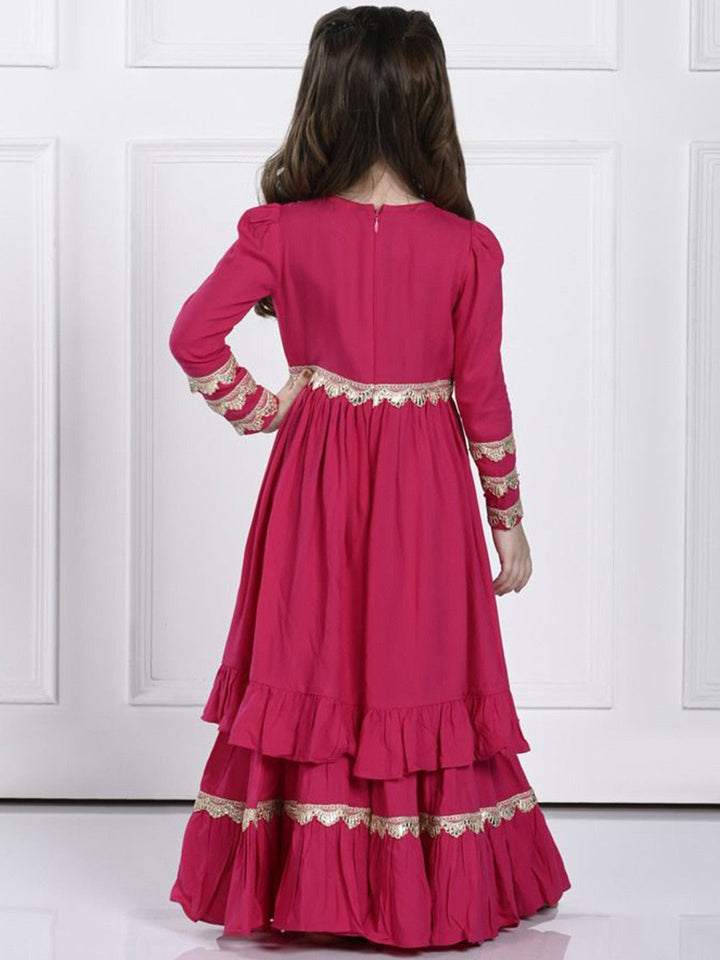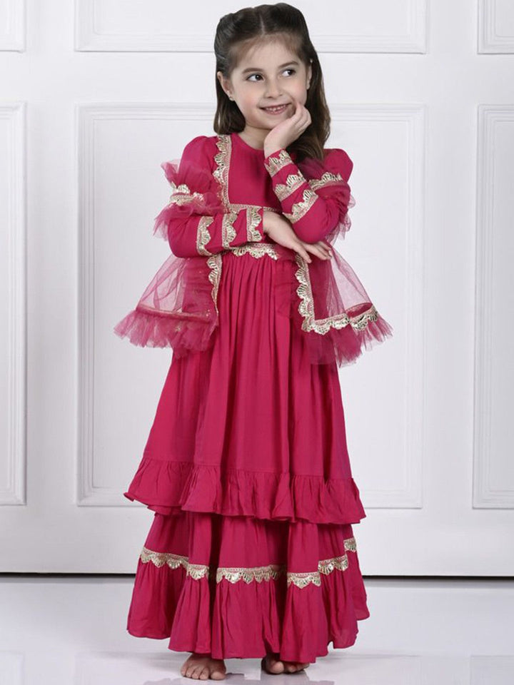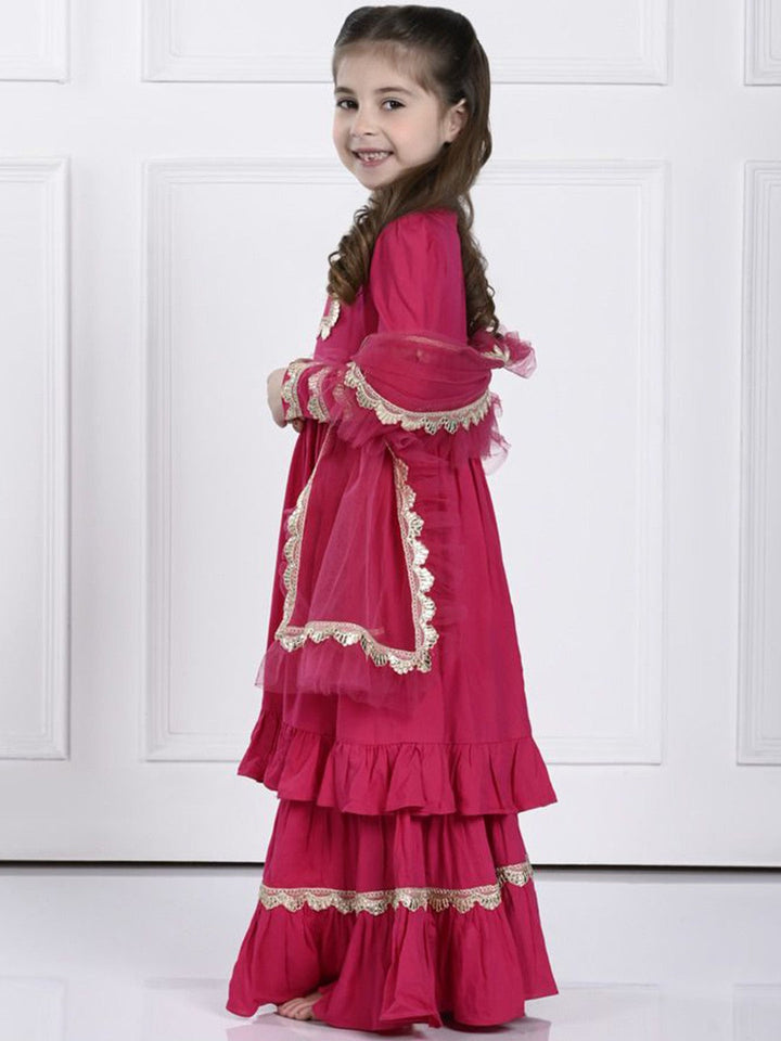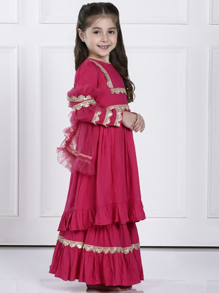 Girls Floral Yoke Design Anarkali Kurta with Sharara & With Dupatta
