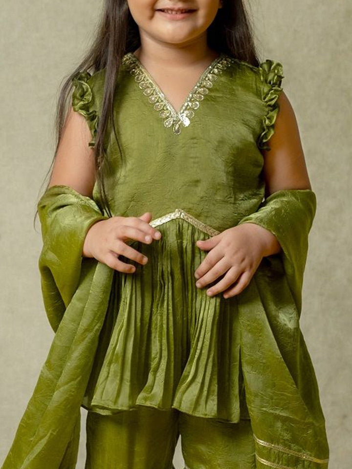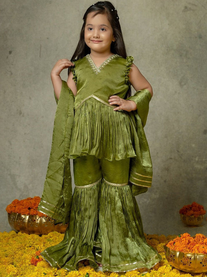 Girls Floral Yoke Design Regular Gotta Patti Kurti with Sharara & Dupatta