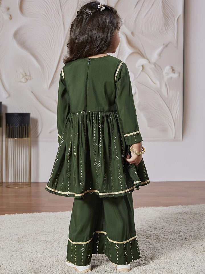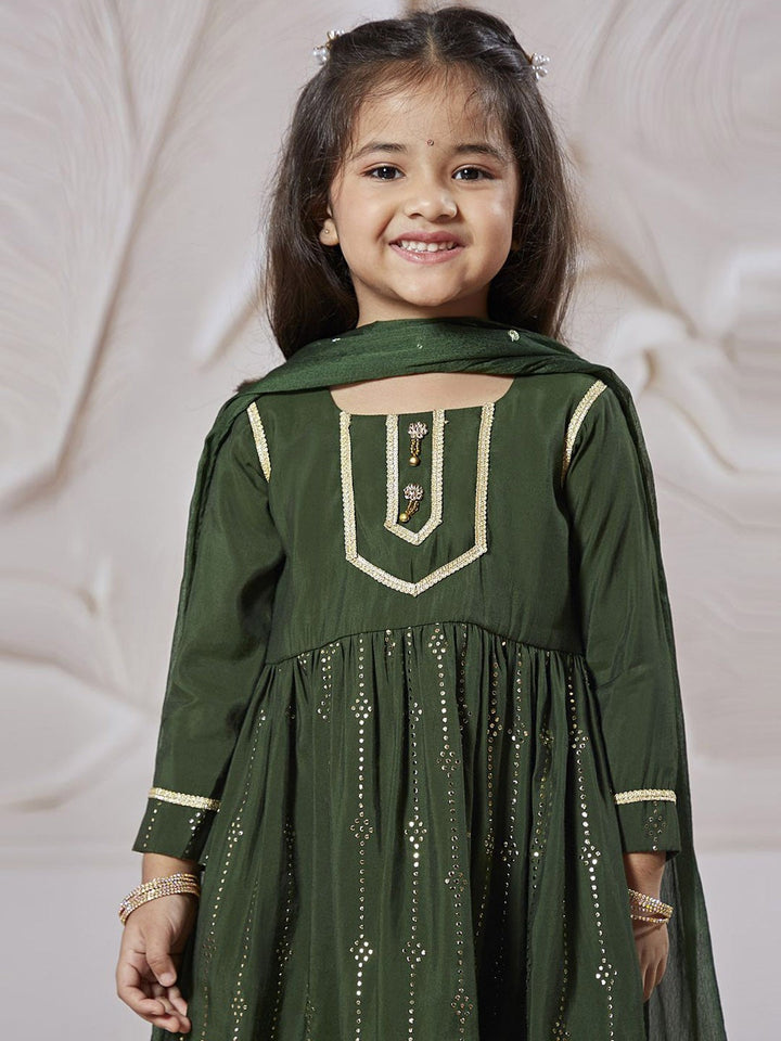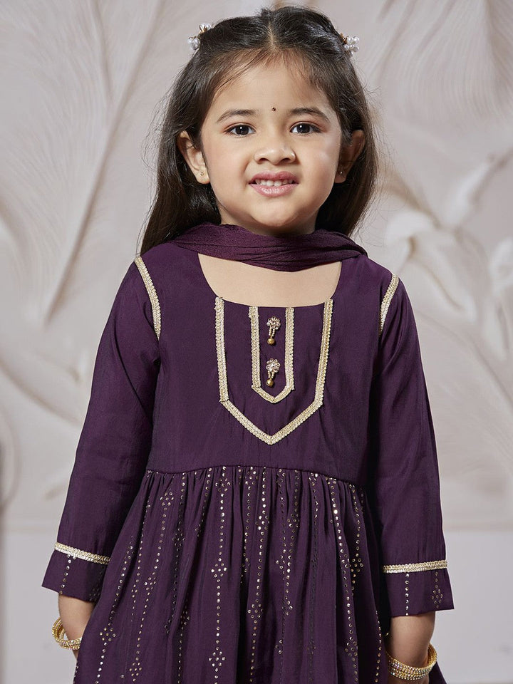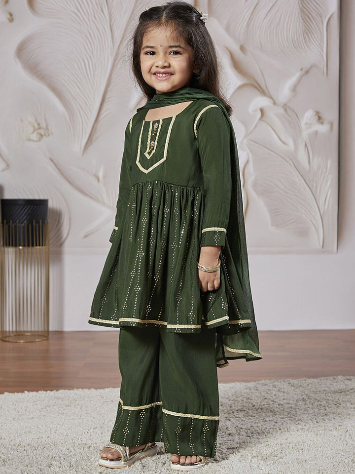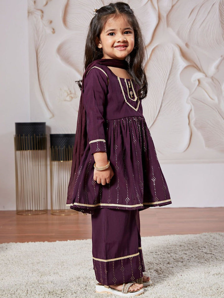 Girls Geometric Printed Round Neck Regular Kurta With Palazzo With Dupatta