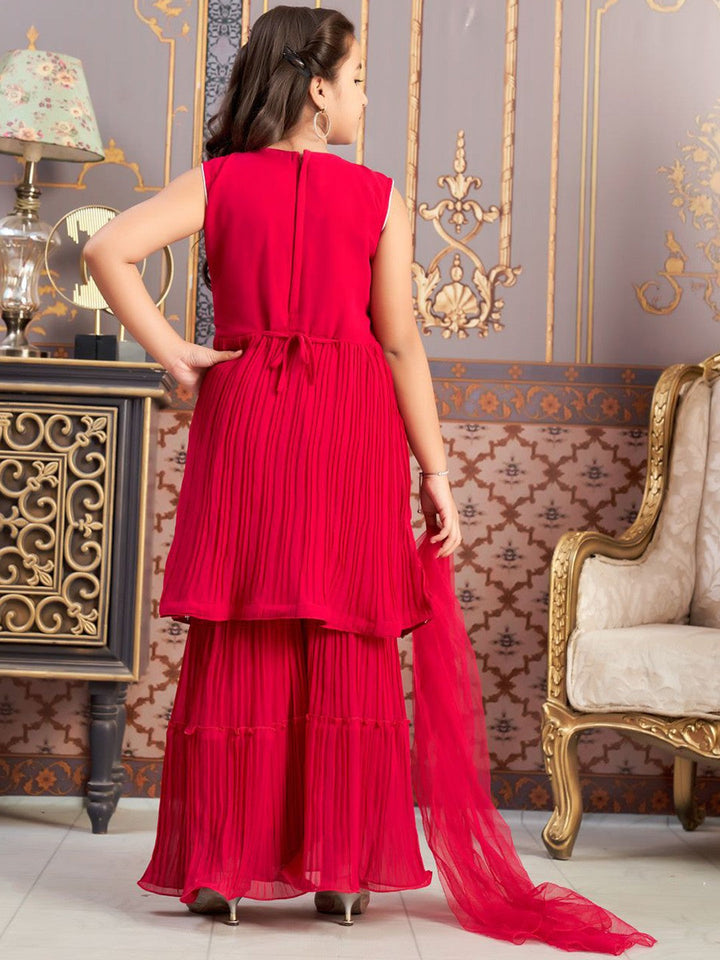 Girls Printed Regular Kurta with Sharara & With Dupatta