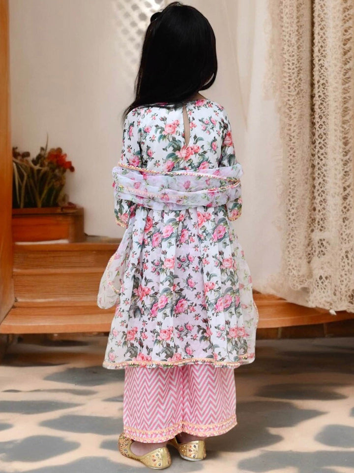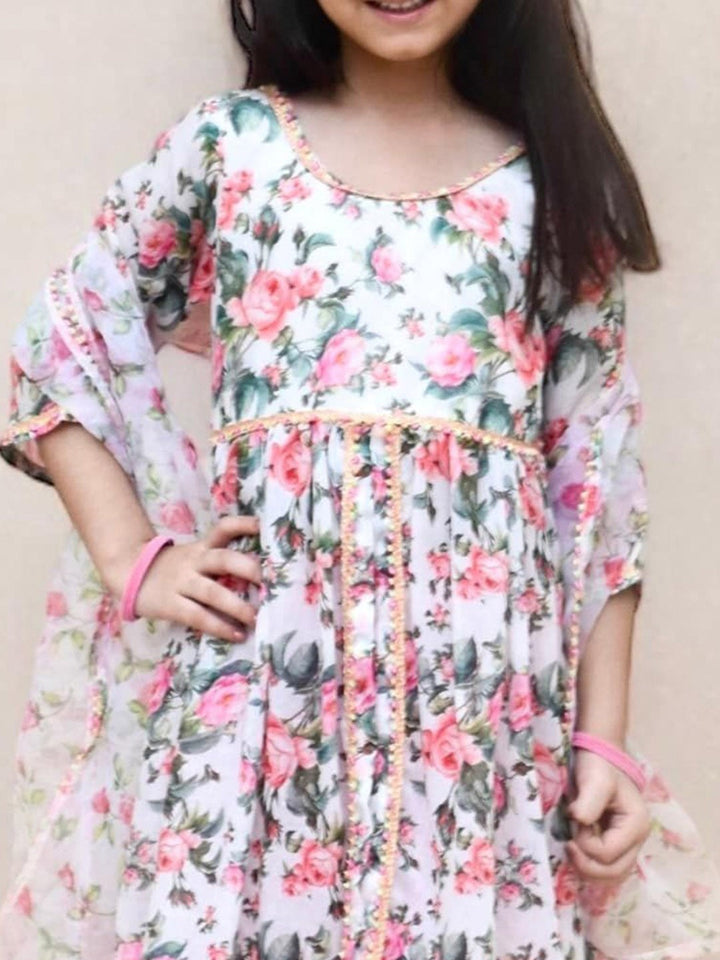 Girls Printed Regular Pure Cotton Kurti with Palazzos & With Dupatta