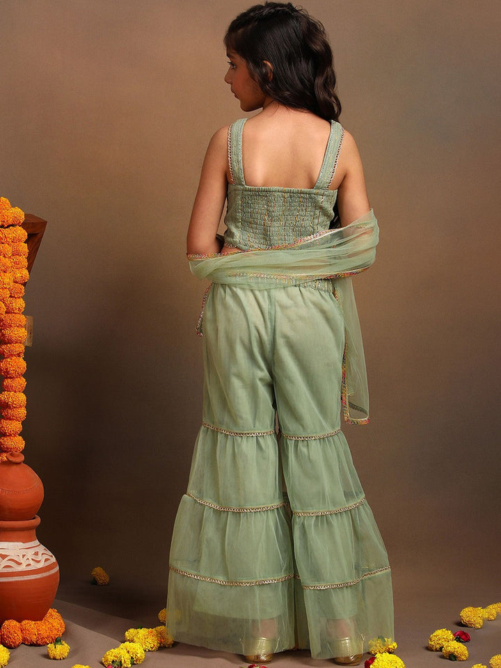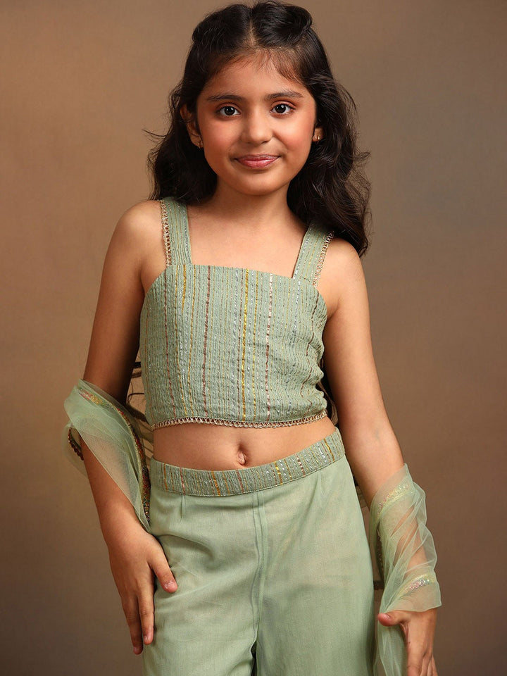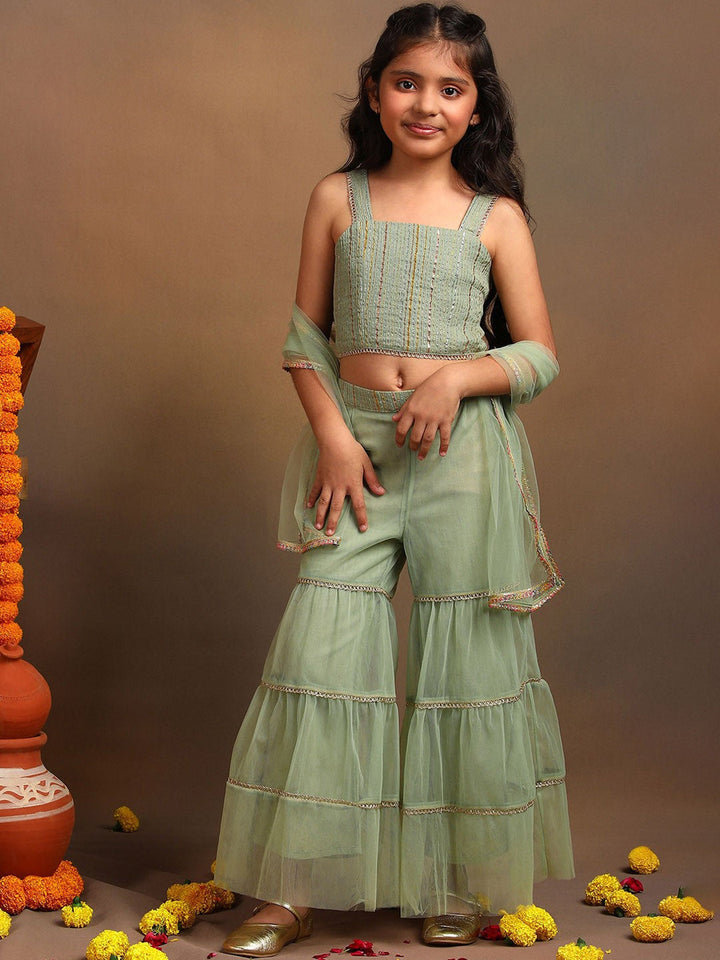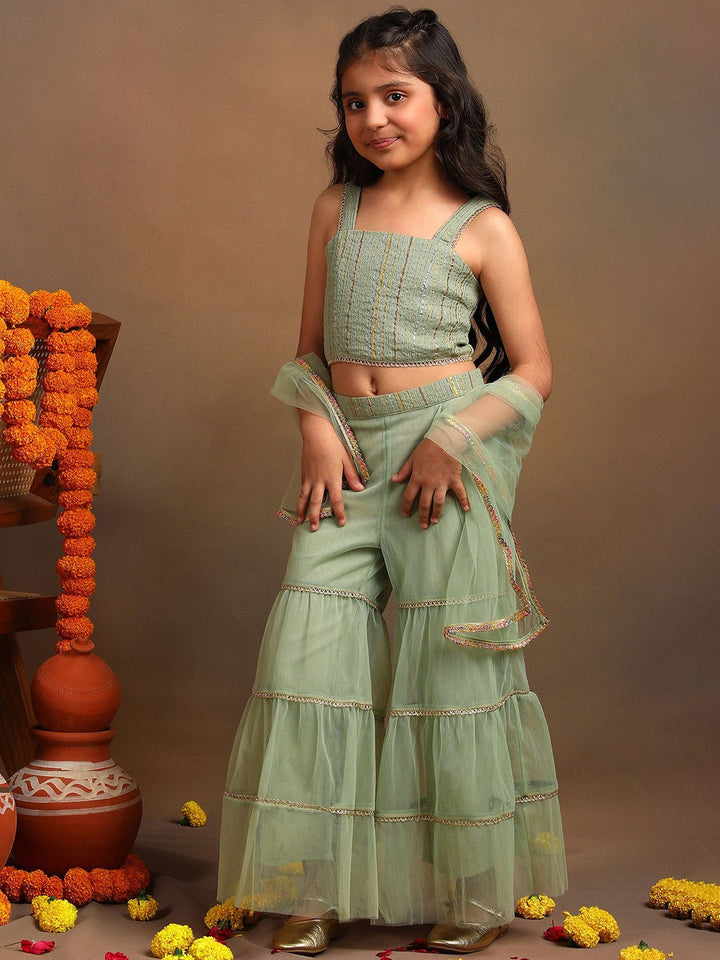 Girls Striped Top with Flared Sharara & Dupatta