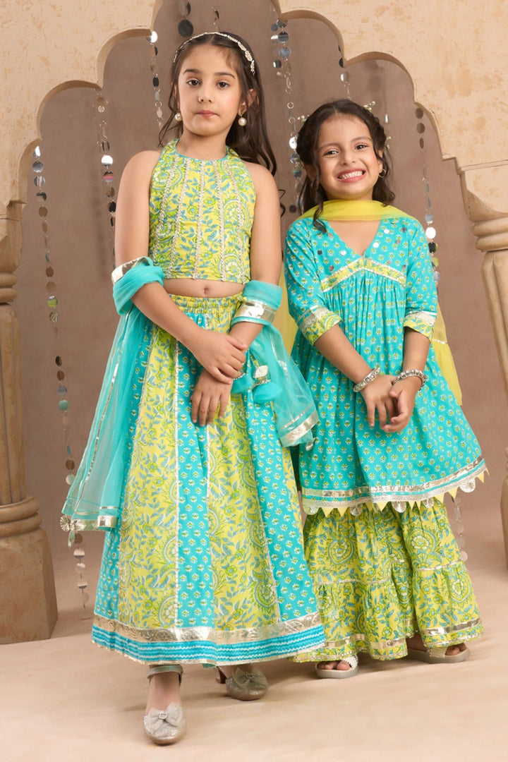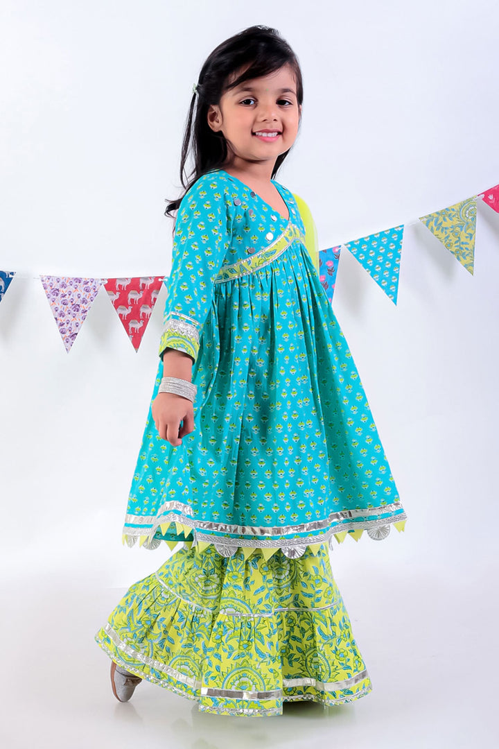 Green Kurta And Sharara 100% Cotton Printed Floral Set