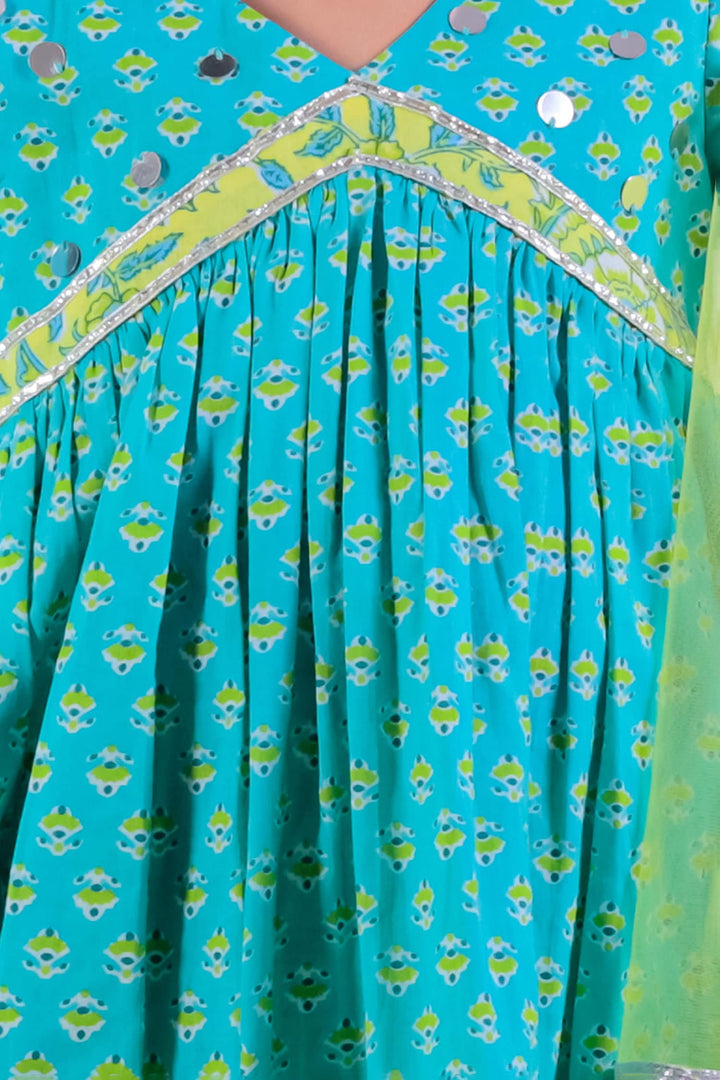 - Fabric: Dupatta: Soft Net, Lining: 100% Cotton, Kurta & Sharara: 100% Cotton