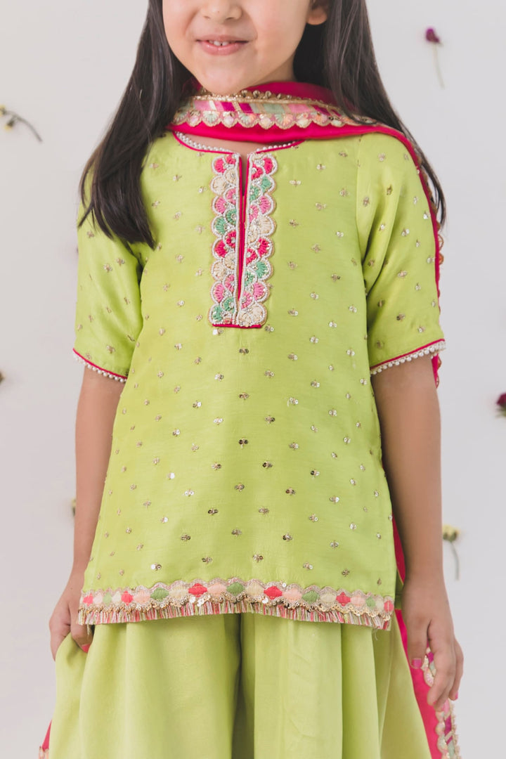 Green Silk Embroidered Sequin Embellished Kurta Sharara Set