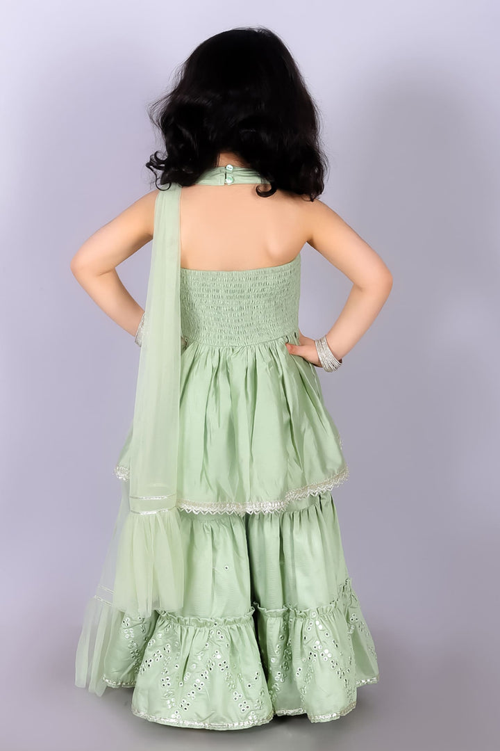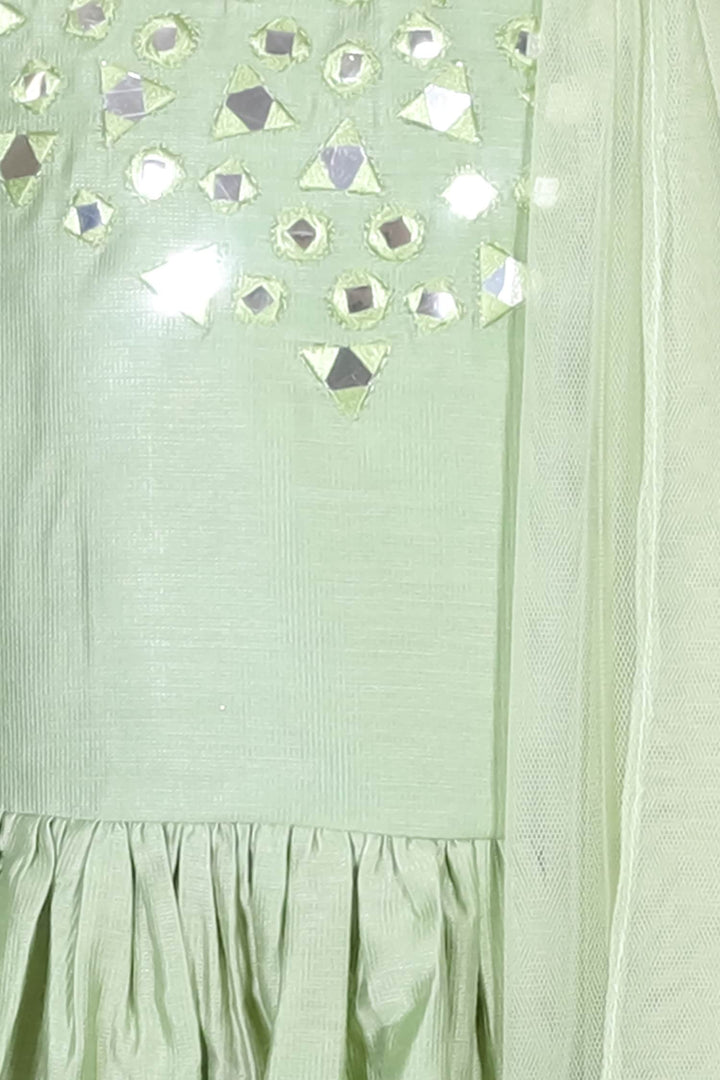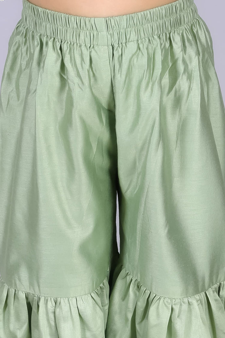 Green Viscose Rayon Embroidered Mirror Kurta Sharara Set