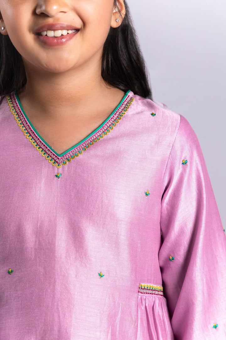 Purple Chanderi Silk Embroidery Floral Kurta Set