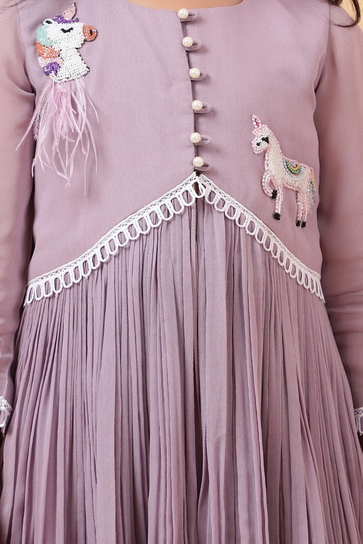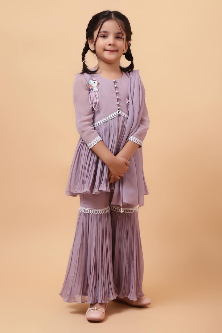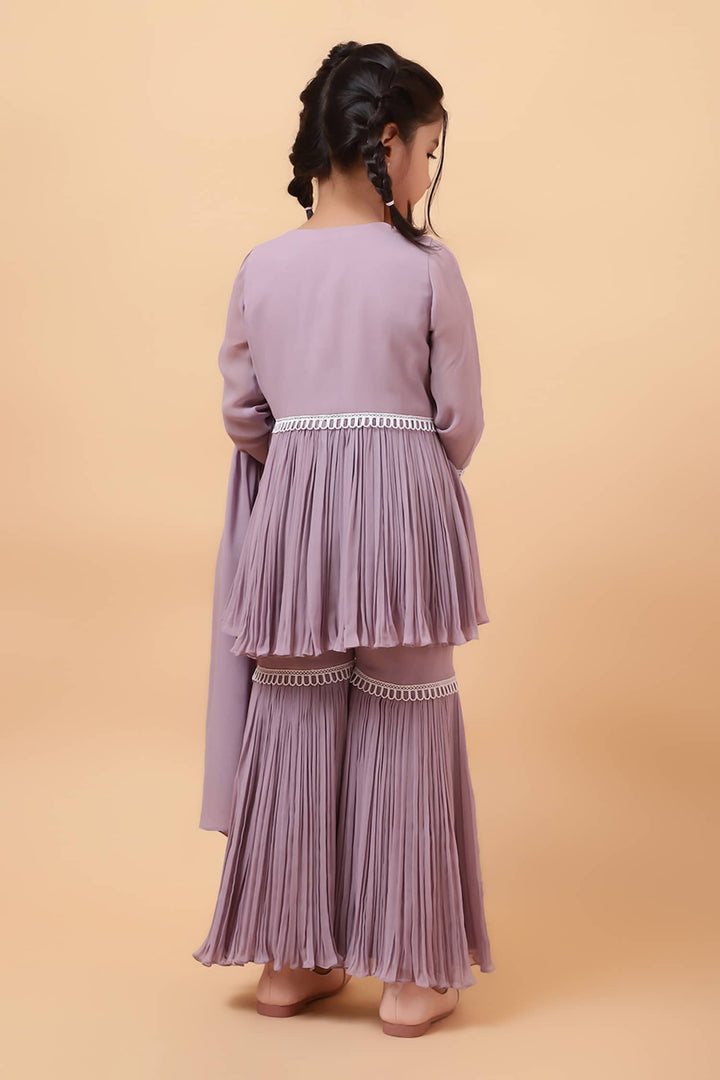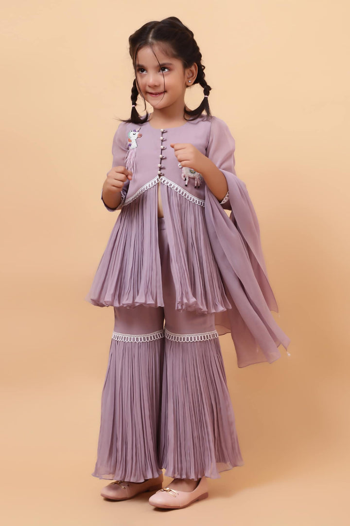 Purple Georgette Embroidered Cutdana Unicorn Peplum Kurta Sharara Set