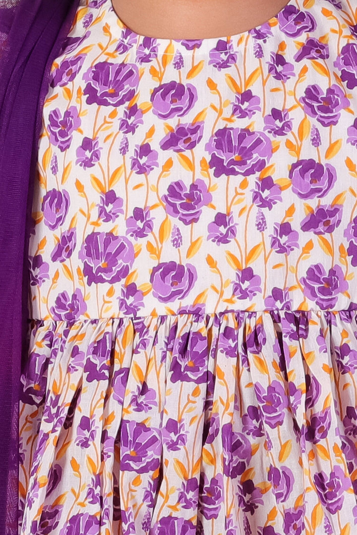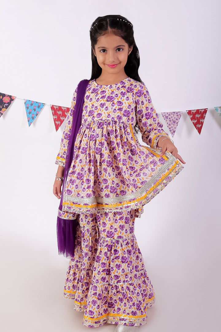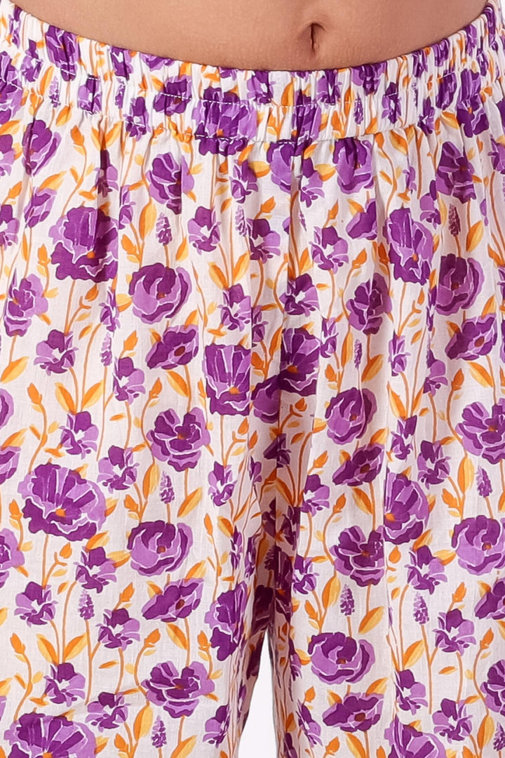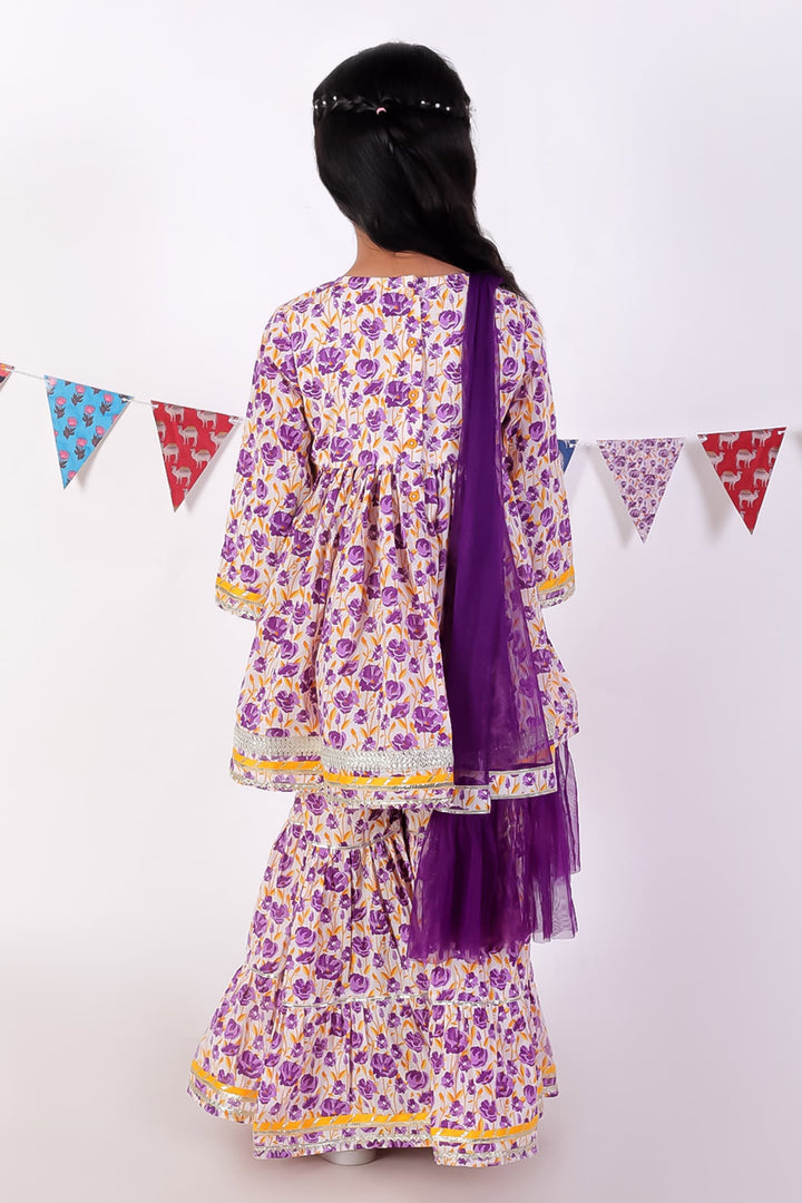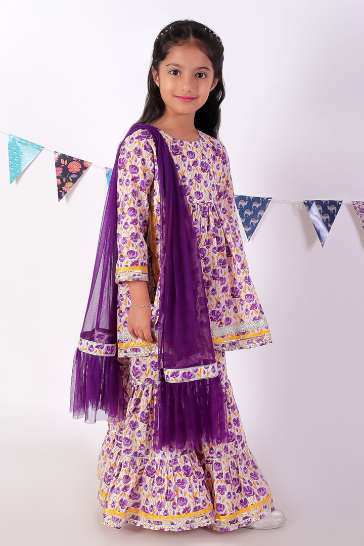 Purple Kurta And Sharara 100% Cotton Printed Floral Set