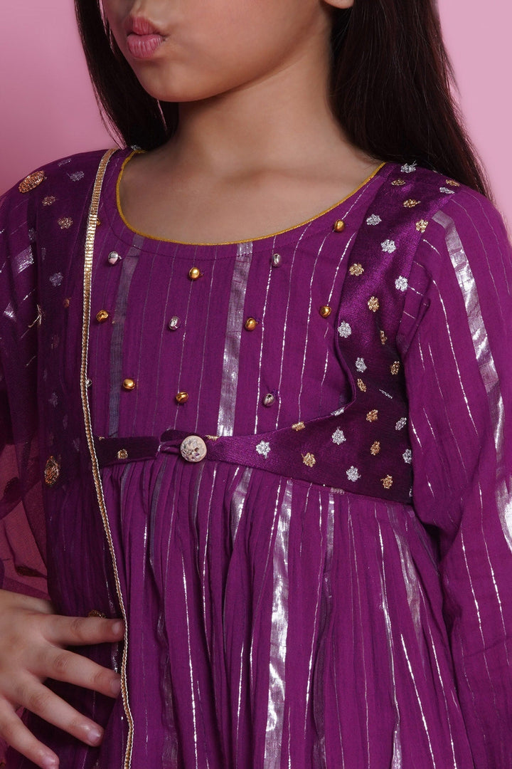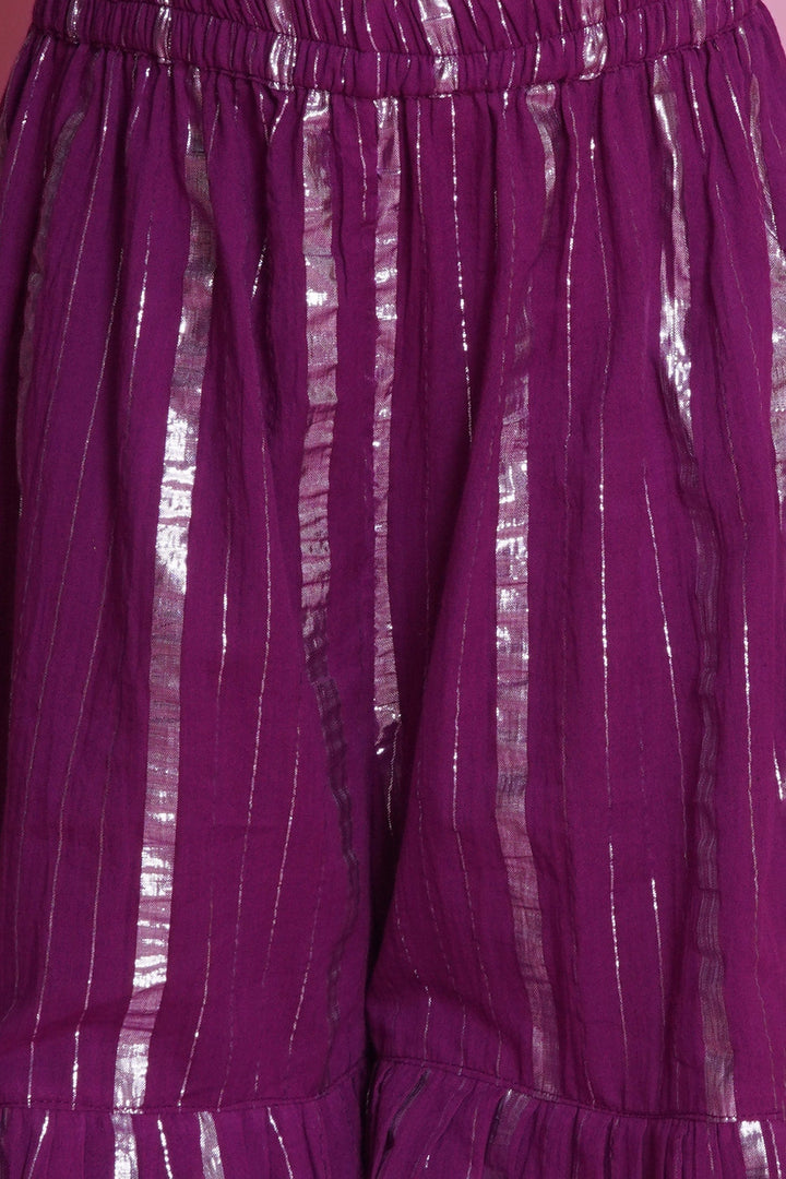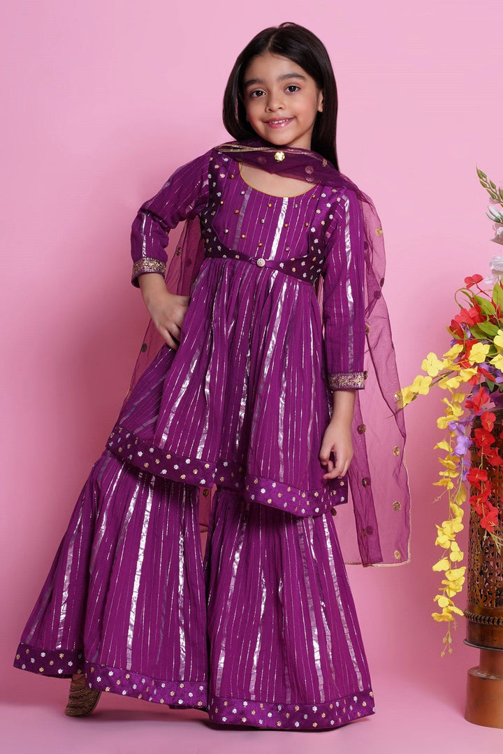 Purple Kurta And Sharara Cotton Lurex Embroidered Abstract Ghungroo Set