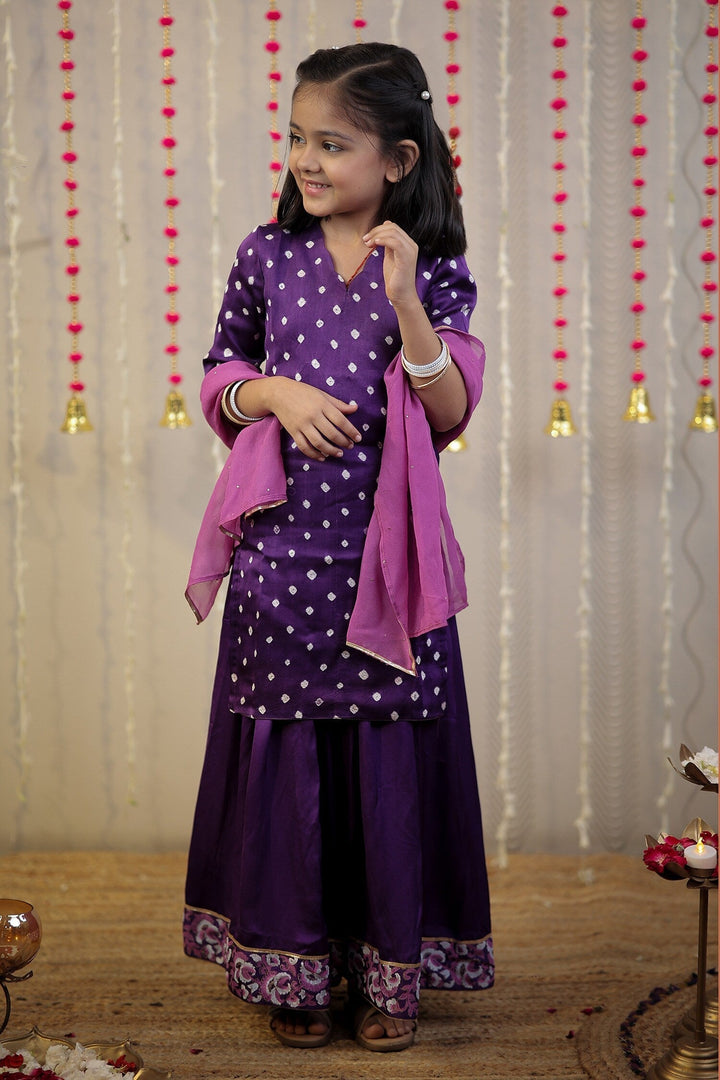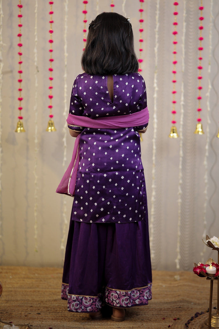 Purple Kurta And Sharara Modal Embroidery Bandhej Printed & Set