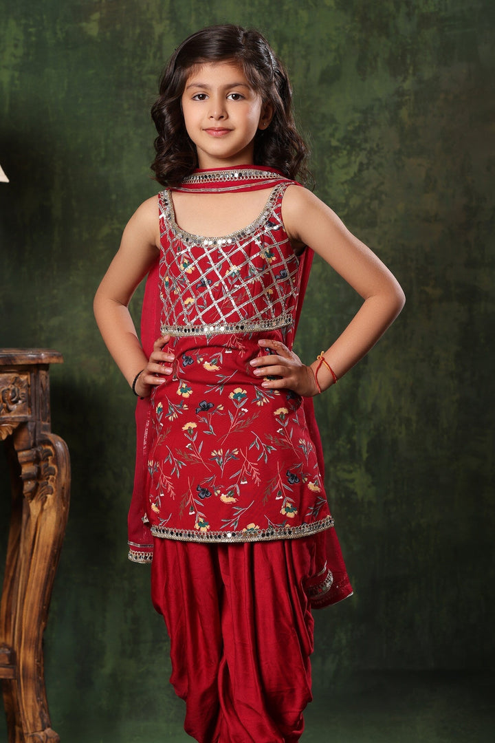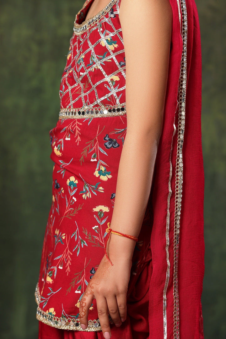 Red Kurta Viscose Cotton Printed Floral Sleeveless Patiala Salwar Set